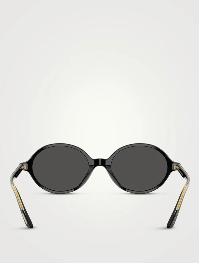 This dedicated collection features a custom core wire inlaid between layers of acetate, inspired by Khaite’s metal hardware. The frames showcase Oliver Peoples and Khaite logos at the temple tips, complemented by dedicated packaging. Inspired by the 2000s, this pair features a sleek oval lens shape and unique Khaite details. Custom logos and universal fitting nosepads complete this understated yet edgy design. RX-able