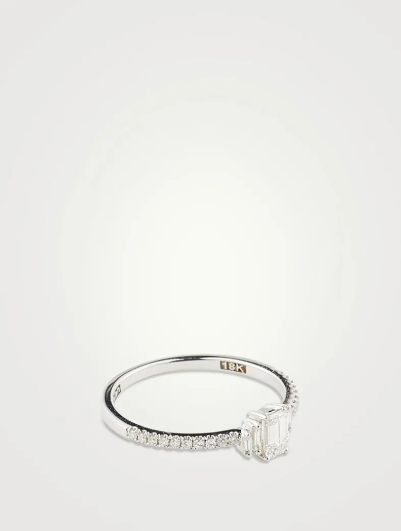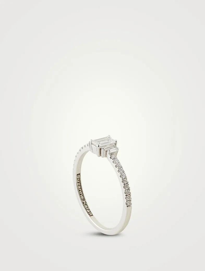 Part of SUZANNE KALAN’s signature Fireworks and One-of-a-Kind collections, this ring features a trio of baguette-cut diamonds set on a pavé diamond band.