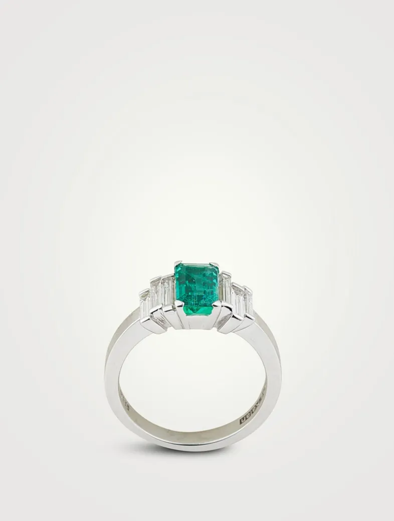 Part of SUZANNE KALAN’s signature Fireworks and One-of-a-Kind collections, this ring features a baguette-cut emerald flanked by baguette-cut diamonds.