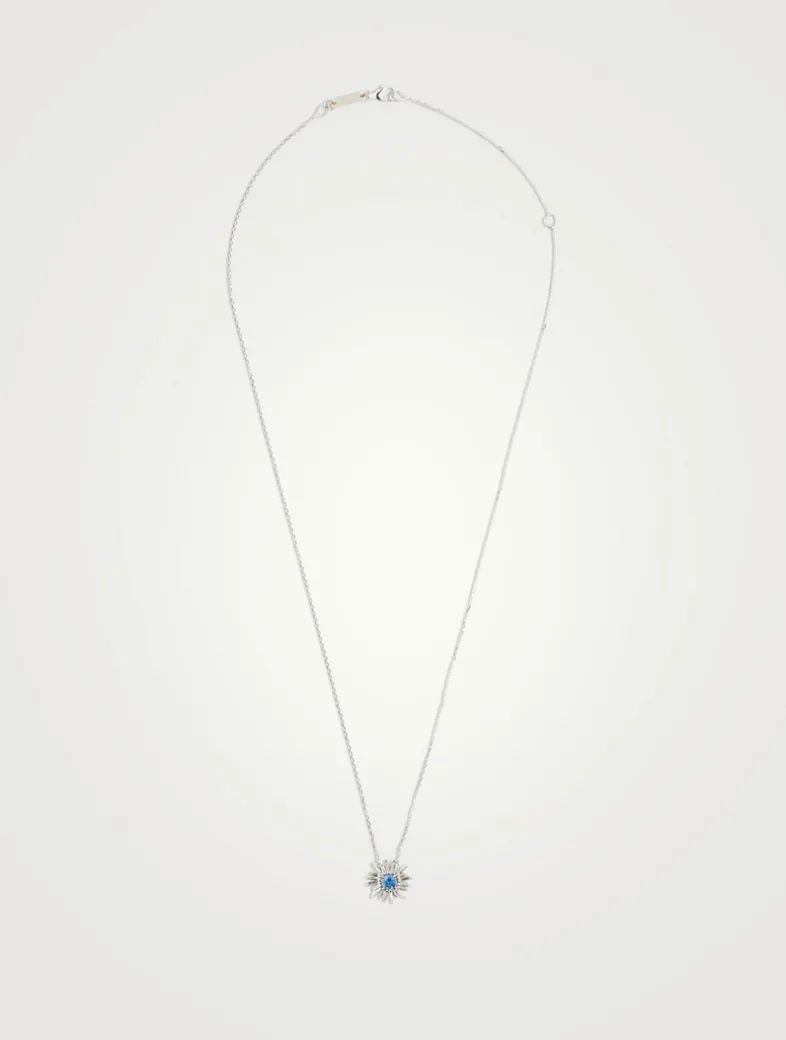 Part of SUZANNE KALAN’s signature Fireworks and One-of-a-Kind collections, this chain necklace features a glowing blue sapphire pendant, framed with baguette-cut diamonds.