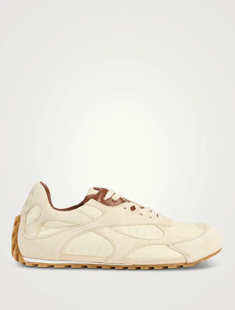 These lightweight nylon sneakers are elevated with soft suede and smooth leather details. Set on a treaded rubber sole, they have a leather lining and a lace-up closure.
