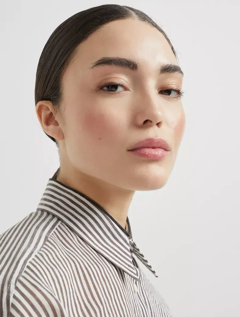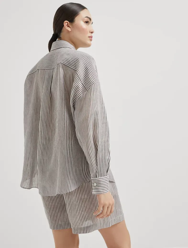 Striped linen and silk organza shirt with shiny collar detail
