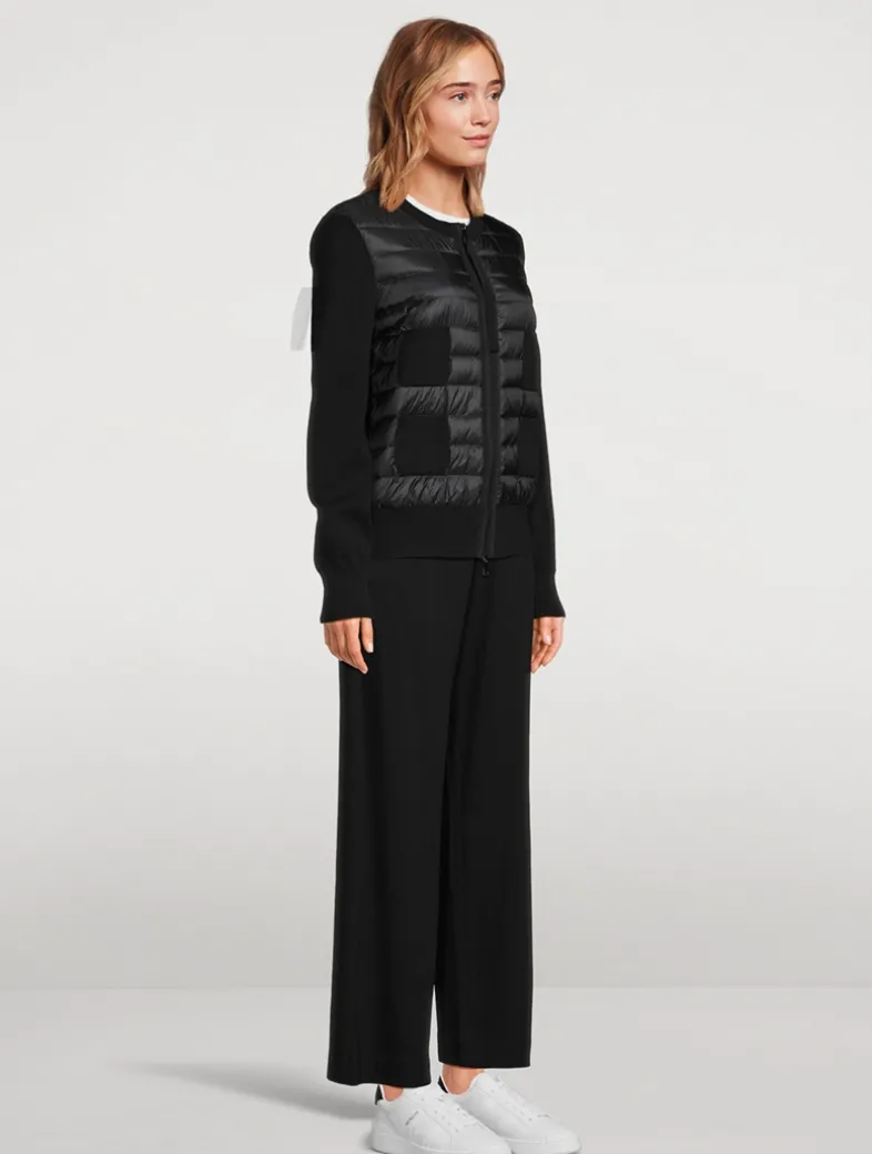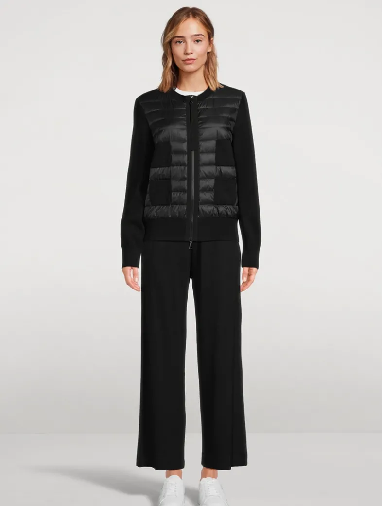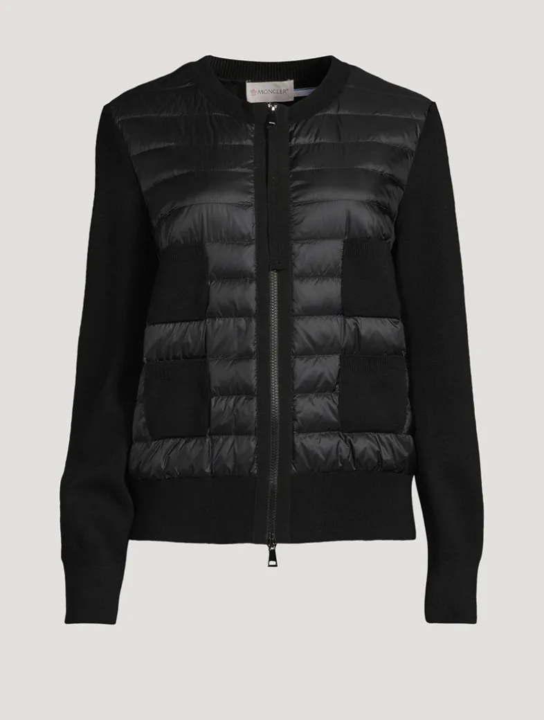 Soft and cozy, this zip-up cardigan is crafted from merino wool. The down-filled longue saison front adds warmth to the design, while the boudin-pattern quilting adds a graphic quality to the timeless knit.