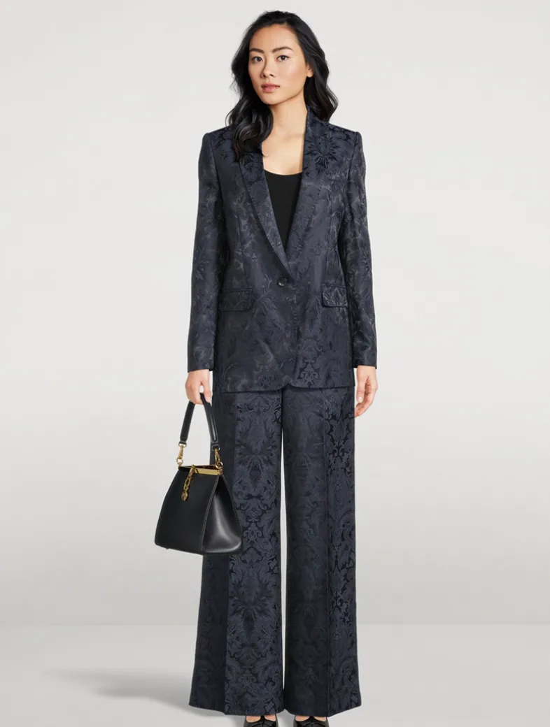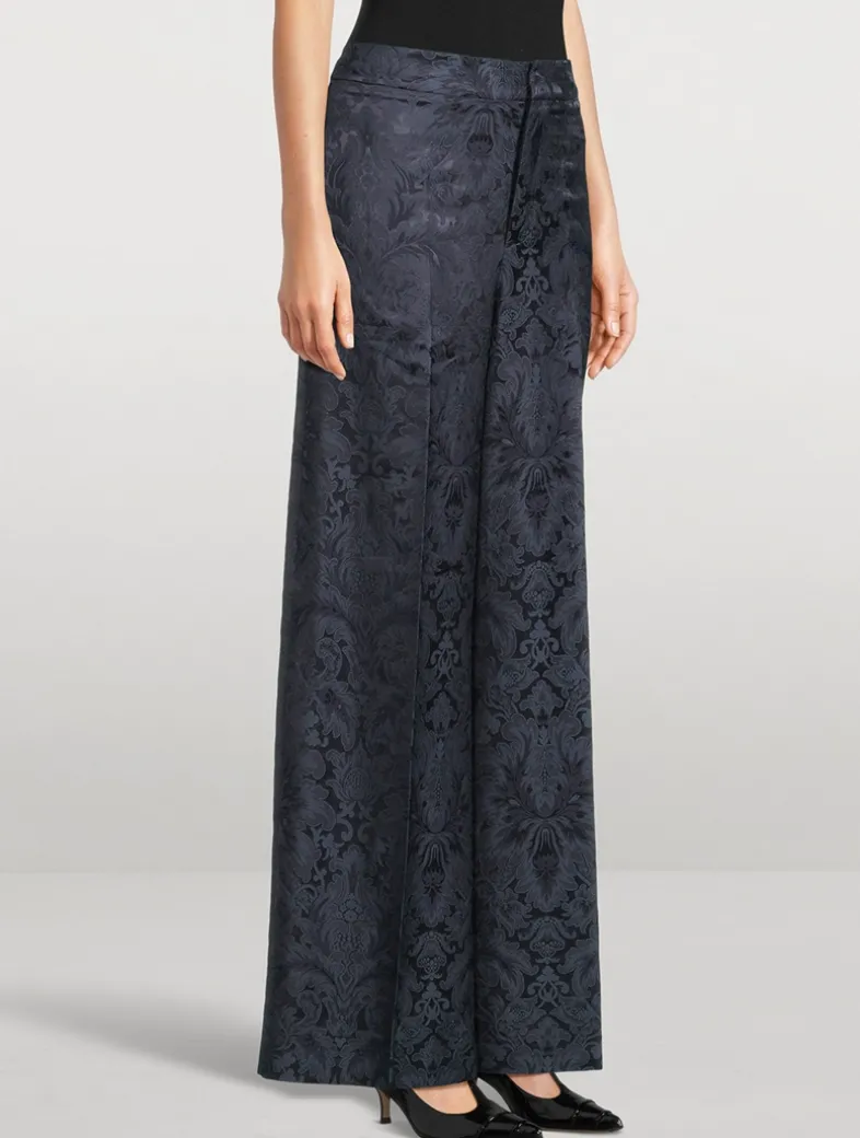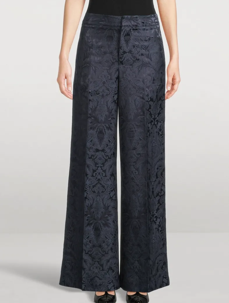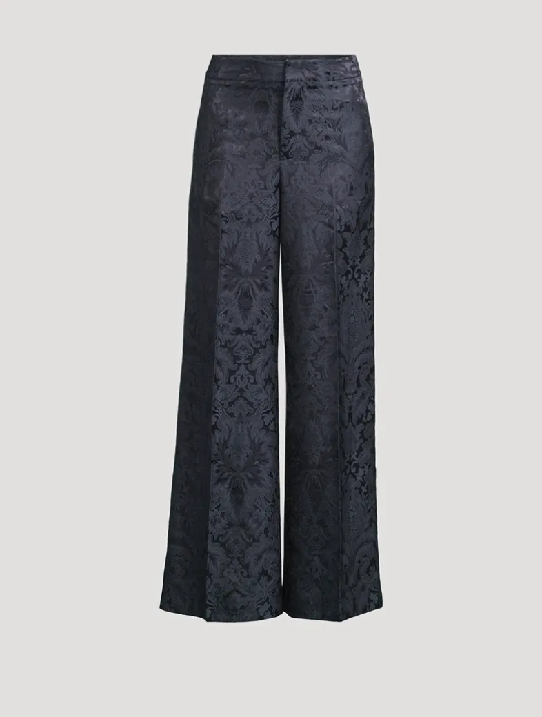Cut to a wide-leg silhouette, these tailored trousers are detailed with a subtle jacquard motif.