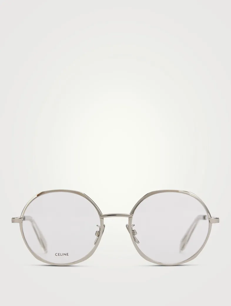 Featuring a geometric frame, these shiny palladium metal eyeglasses are embellished with a Celine logo engraved on both temples.