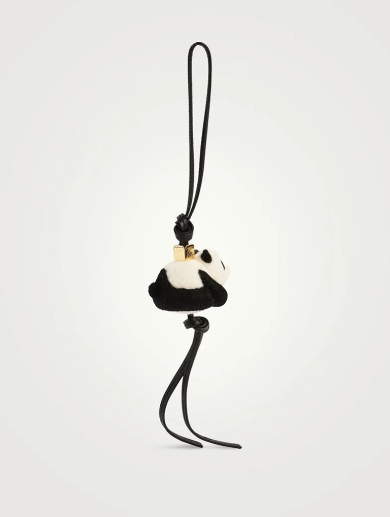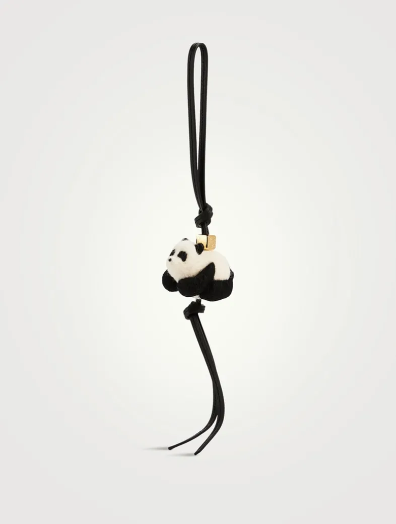 Panda charm in plush felt with a looped calfskin strap and an Anagram dice.