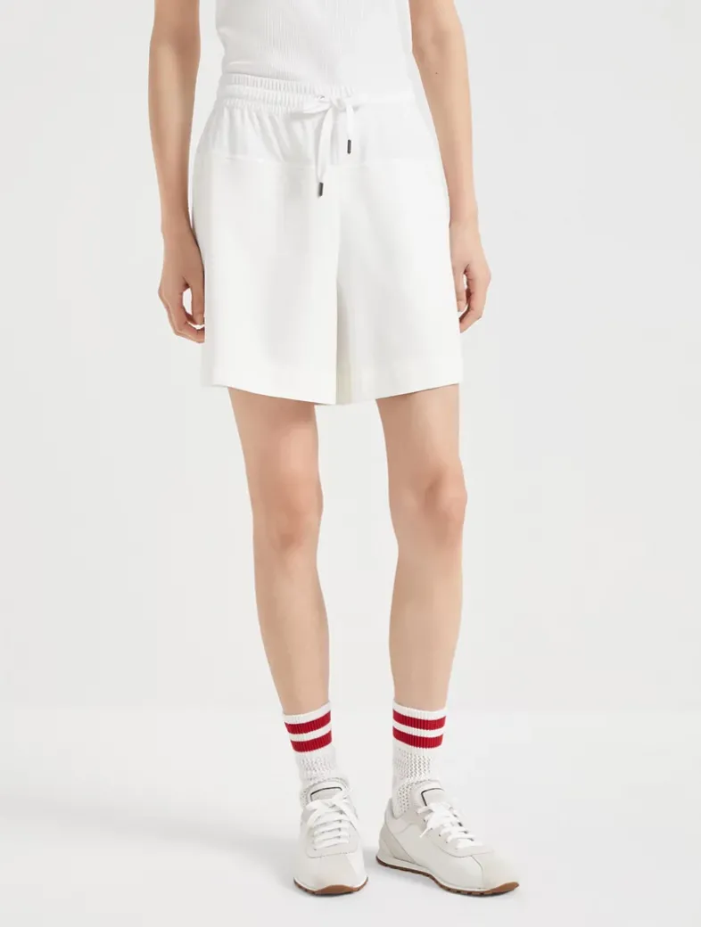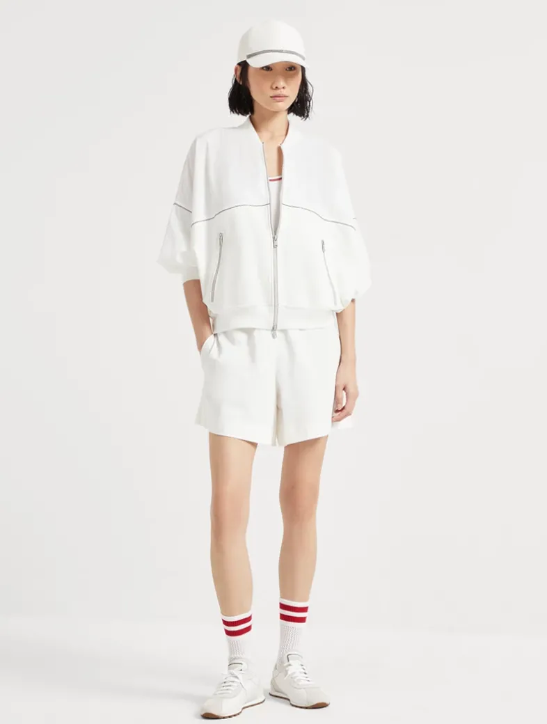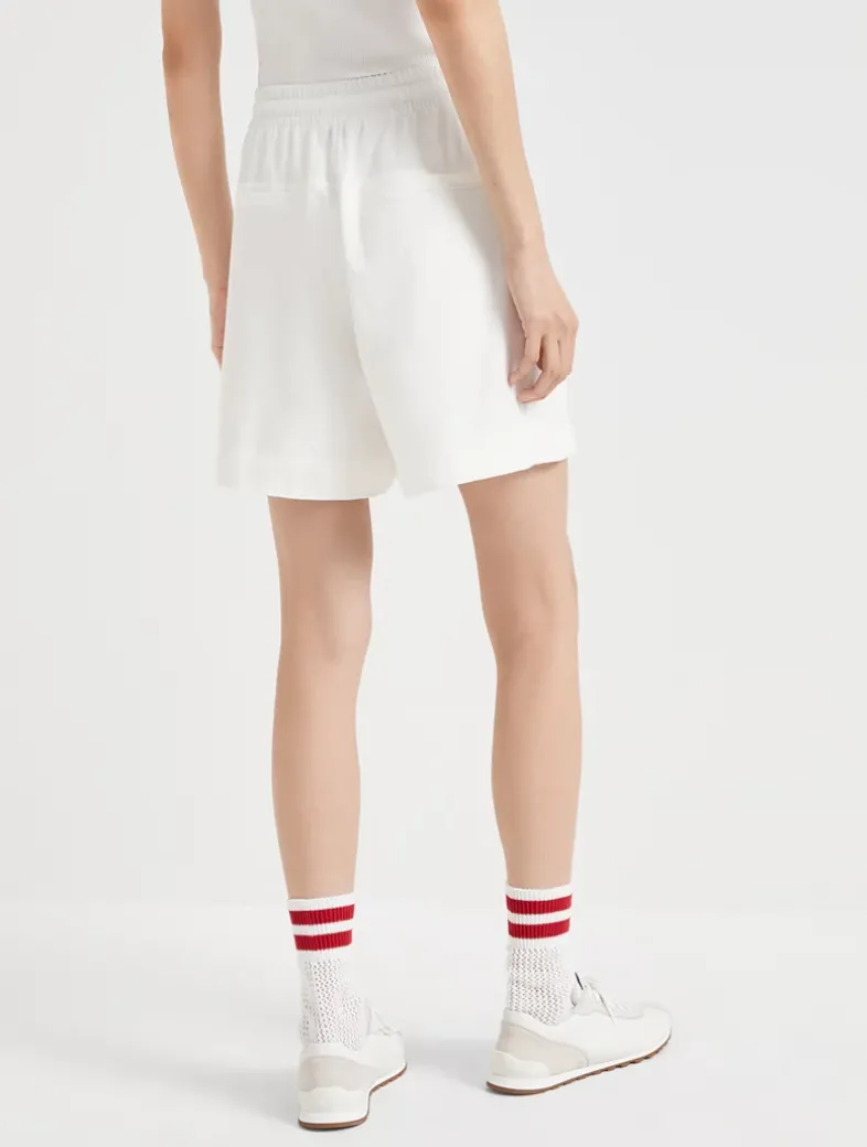 Stretch cotton lightweight French terry paneled track shorts