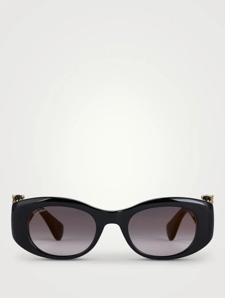 Made from glossy acetate, these sleek oval sunglasses are detailed with smooth golden-finish panther head C’s on the temples.