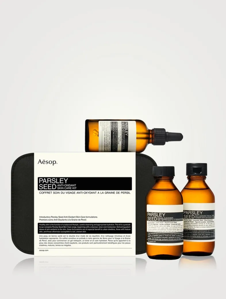Introductory formulations from our Parsley Seed Anti-Oxidant Skin Care range, comprising a cleanser, toner and hydrating serum.