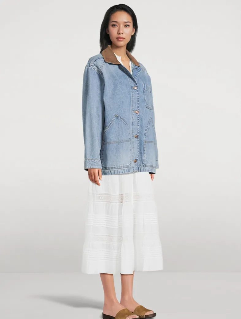 Crafted from vintage-inspired cotton denim, the Pascual recalls 1940s barn jackets. It features a slouchy, relaxed fit, custom DÔEN-branded copper buttons, and a contrast corduroy collar and inner cuff detail. For added utility, there are two roomy hip pockets and a chest pocket.