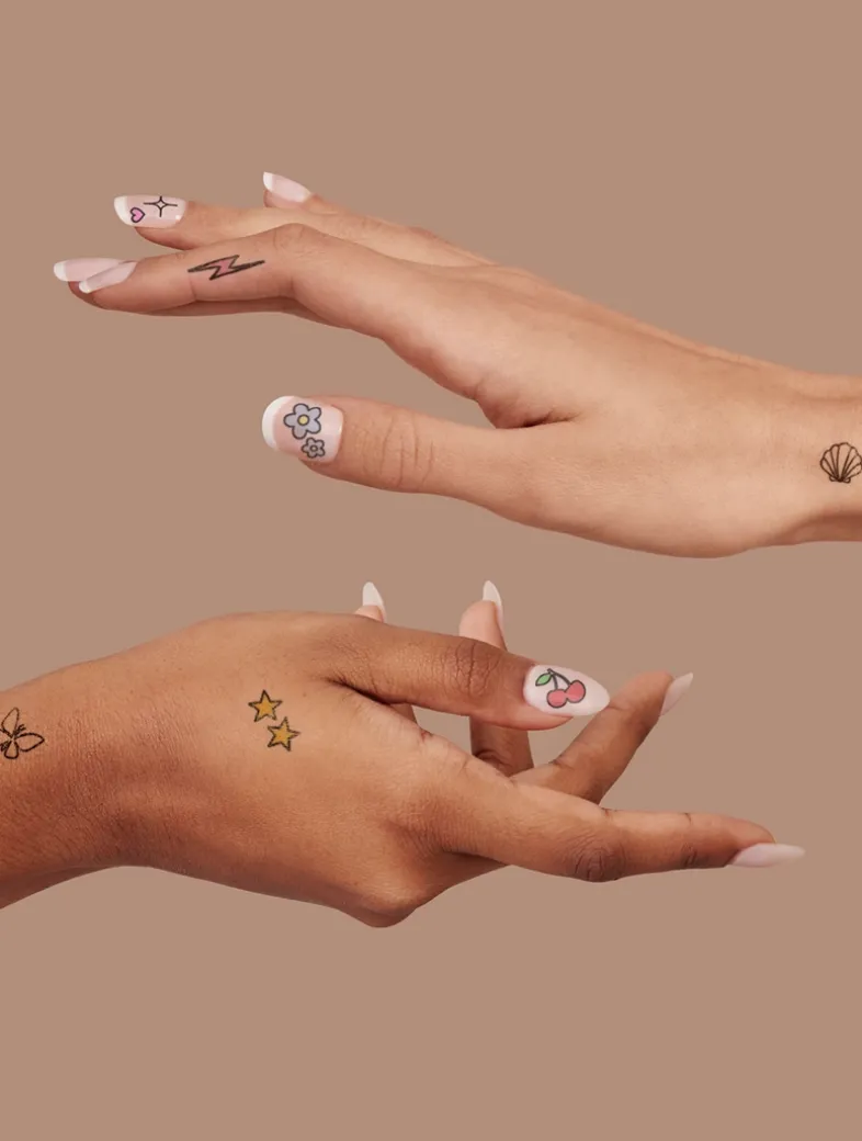The tiniest temporary tattoos, perfect for adding a touch of charm to nails and skin.