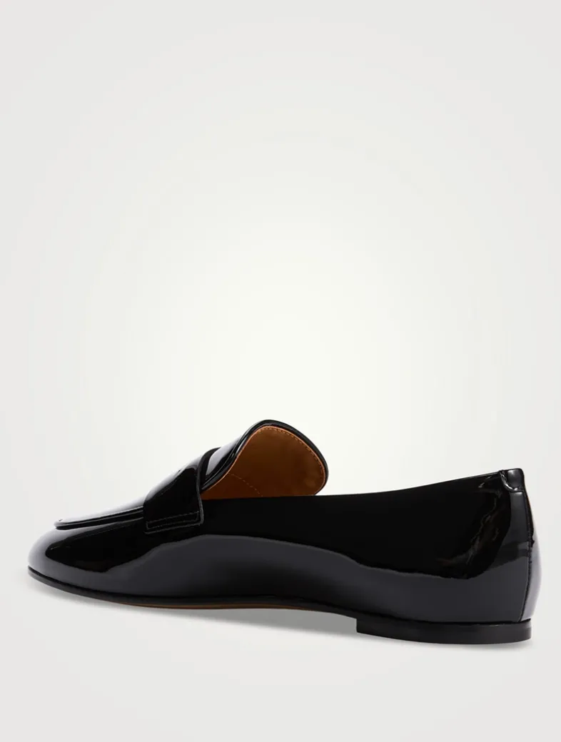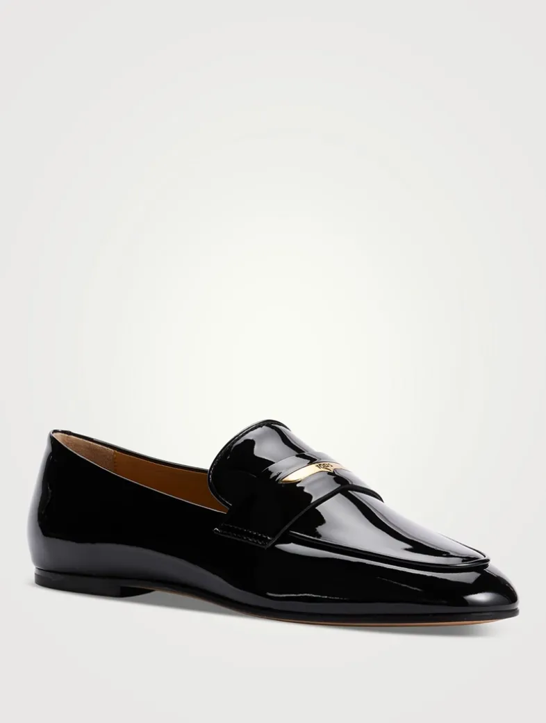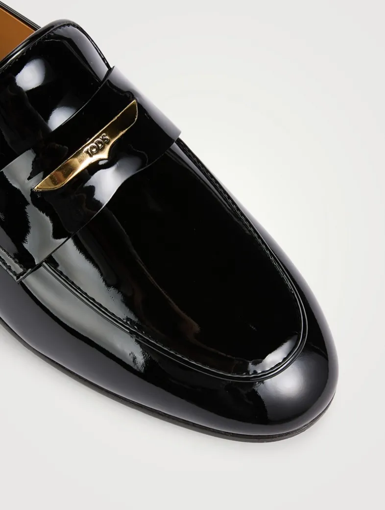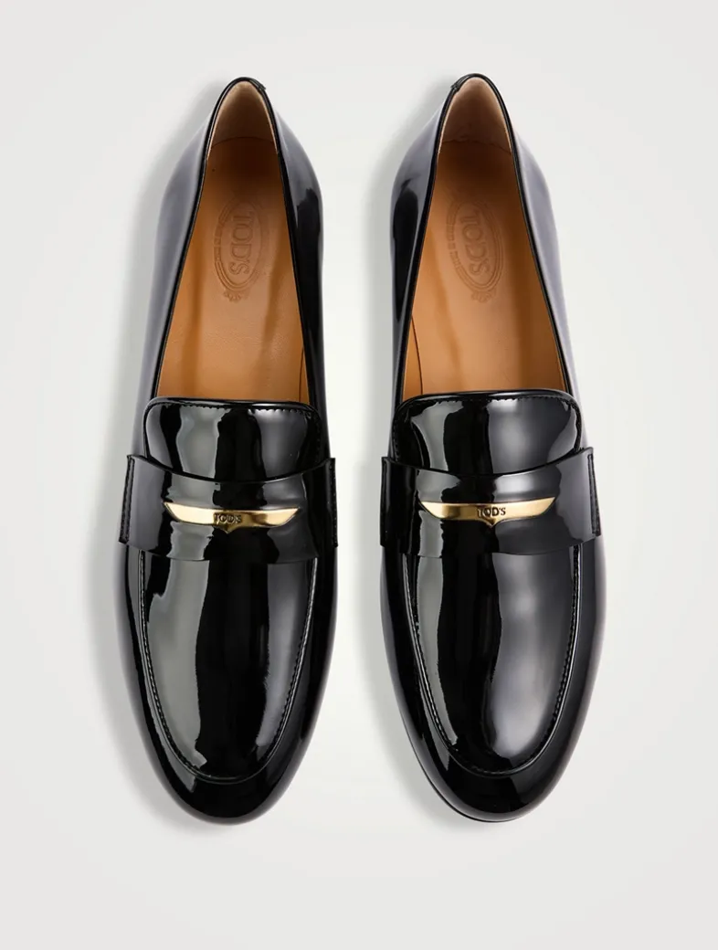 Loafers in high-shine patent leather with leather outsole and penny bar enriched by a branded metal insert. A style with timeless elegance.