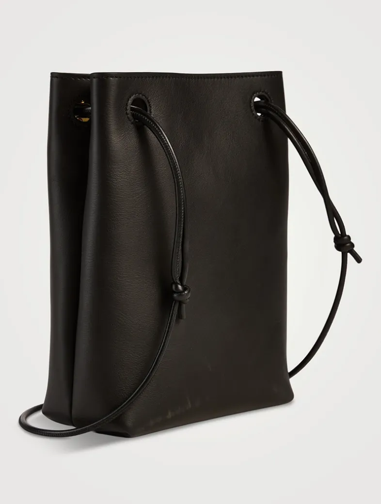 This slim pouch is crafted in smooth calfskin featuring a folded construction, a tubular strap, and a double signature Anagram Pebble. The interior has one pocket and a leather lining.