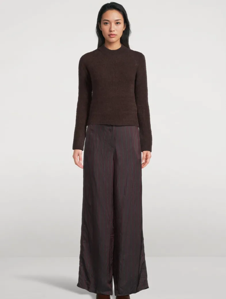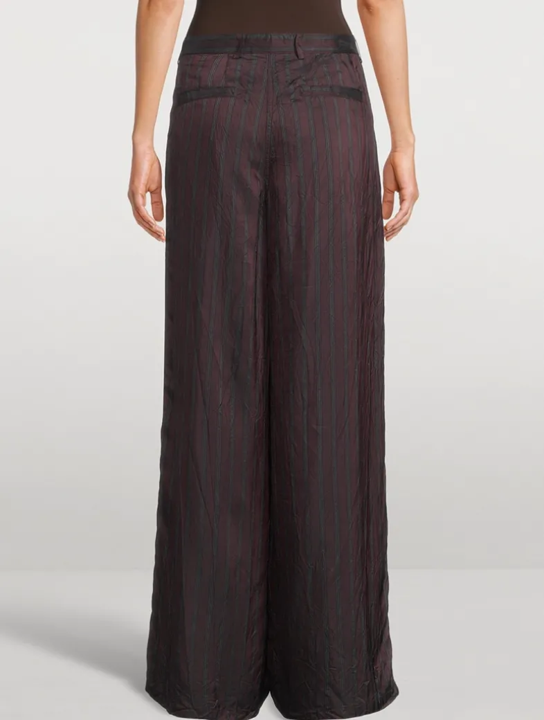 These wide-leg pants are crafted in striped cupro. Cut to a high-rise waist, they have side slit pockets, back welt pockets, and belt loops.