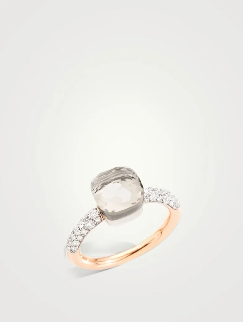 Petit Nudo 18K Rose And White Gold Ring With White Topaz And Diamonds