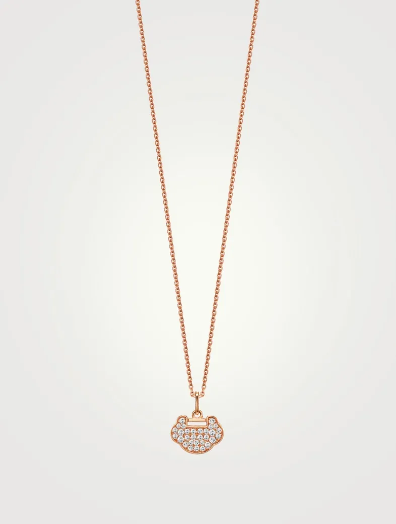 Chain necklace features an abstract, geometric charm filled with diamonds.