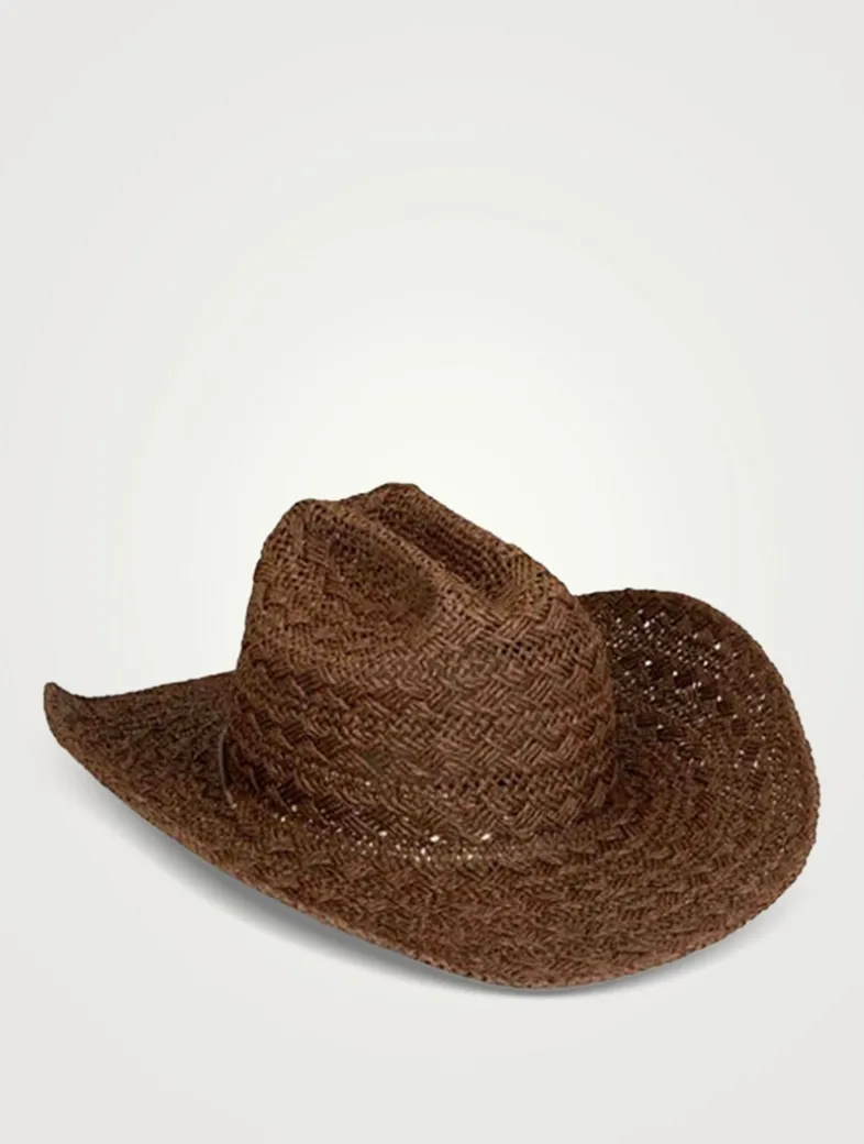 Handwoven from paper straw, this wide-brimmed cowboy hat features a classic cattleman crown and a cotton cord chin strap with a wooden bead.
