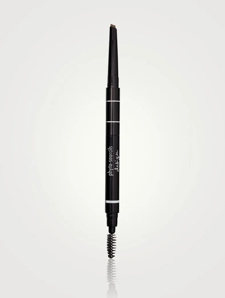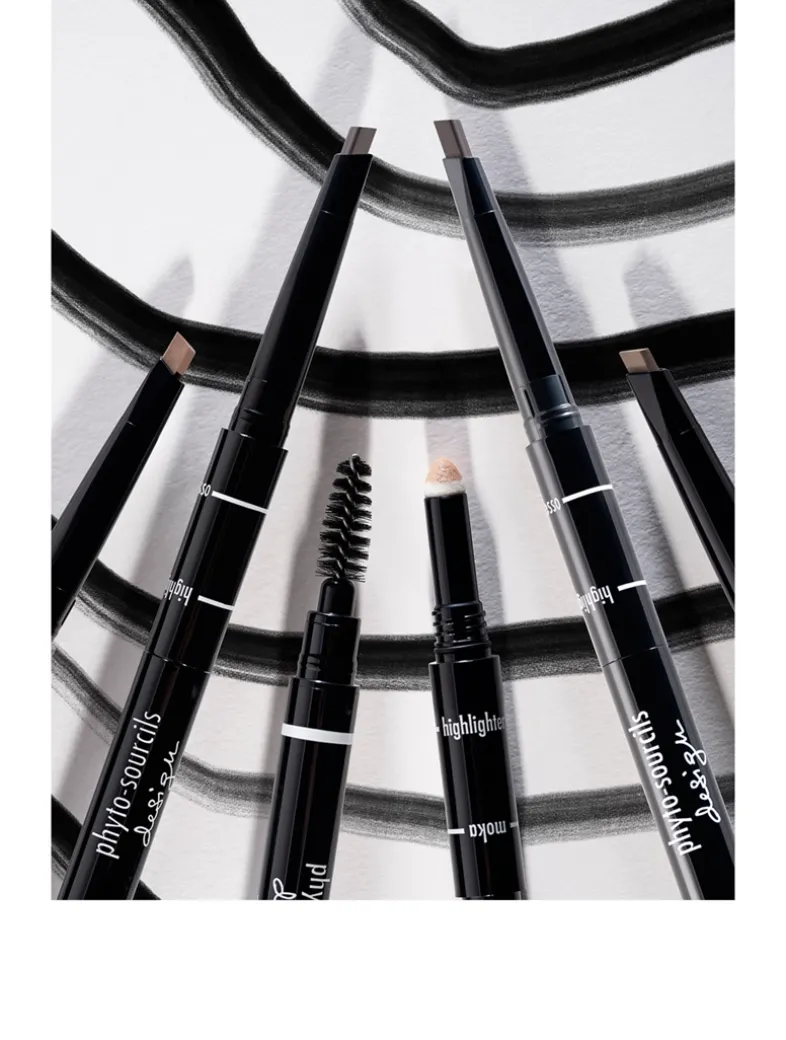 Phyto-Sourcils Design is a multi-tasking eyebrow pencil with 3 specific functions. It is the ultimate must-have professional tool showcased in unique Sisley packaging: 1- taming brush, 2- triangular tipped eyebrow pencil to precisely redefine, reshape and fill in eyebrows, and 3- highlighter, to apply under the arch of the eyebrow for perfecting eyebrow make-up and highlighting the eyes. The gliding texture of the triangular-tipped pencil allows for an easy, expert application. The make-up result is buildable, from natural to more intense, or even with the ease of redefining the entire eyebrow! The foam-tip coated with a universal shade highlighter powder enables the correct amount to be applied under the eyebrow. Phyto-Sourcils Design is rub-proof, allowing the shape of the brows remains impeccable all day long, as well as enriched with key skin care ingredients (Acacia wax and Camellia oil). The eyebrows look restructured. Eyes are more defined and have more character. The face looks rebalanced. Long-lasting wear.
