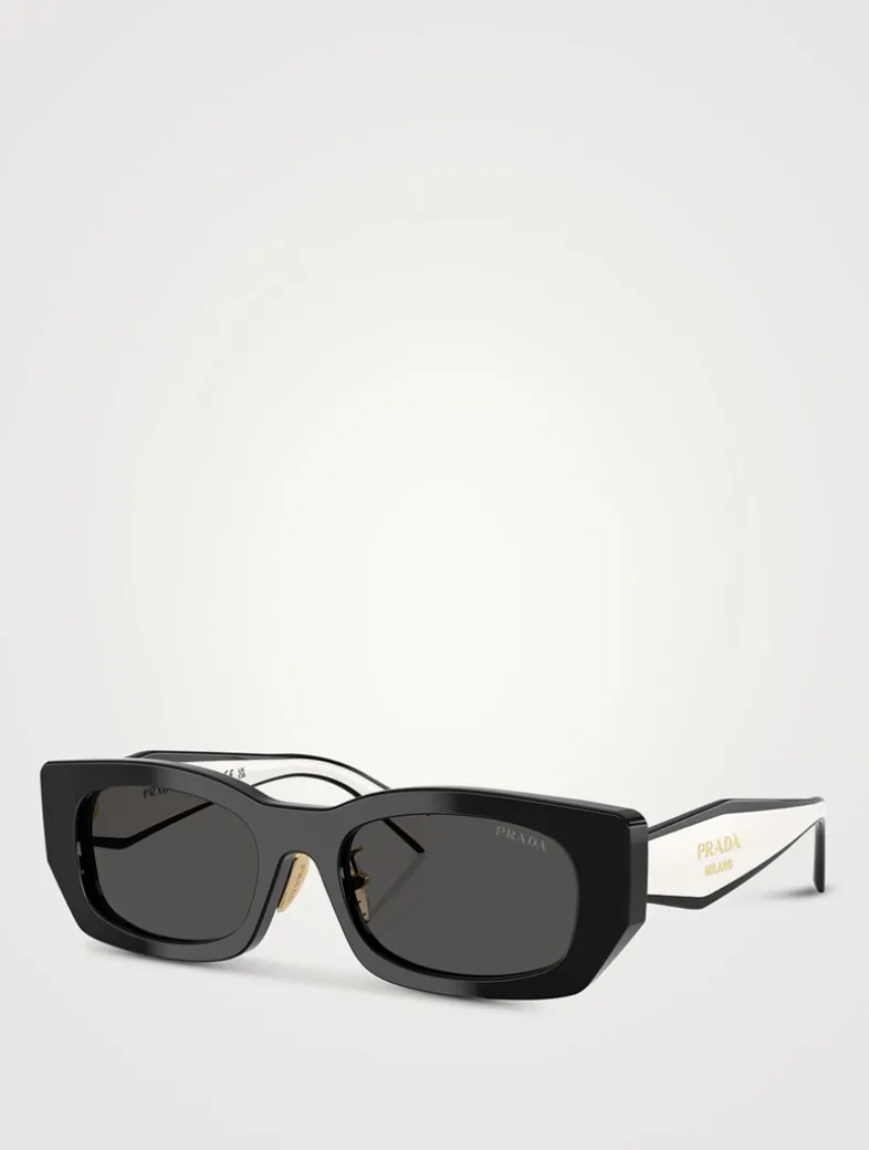 Offering a perfect blend of style and comfort, these sunglasses showcase a striking geometric design with a pillow frame, and feature the Prada Milano logo elegantly displayed on the temples. This style is RX-able.