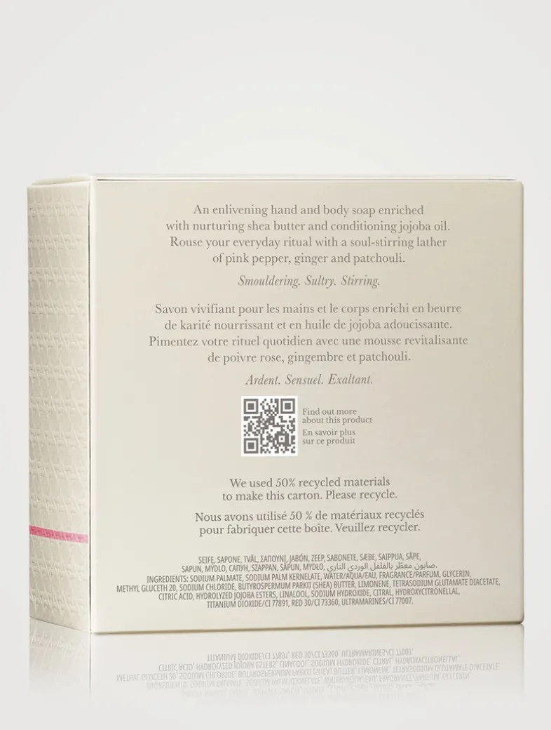 Discover the secret to a smouldering bathing routine with this woody-spicy hand and body soap, enriched with nourishing shea butter and jojoba oil, as well as enticing notes of pink pepper, ginger and patchouli. With a reduced water formula, these soaps make a welcome addition to any eco-conscious home. Molton Brown used light, plastic-free packaging, which helps keep carbon emissions low during transportation. Plus, they’re responsibly housed in recyclable card boxes made from 50% recycled materials.