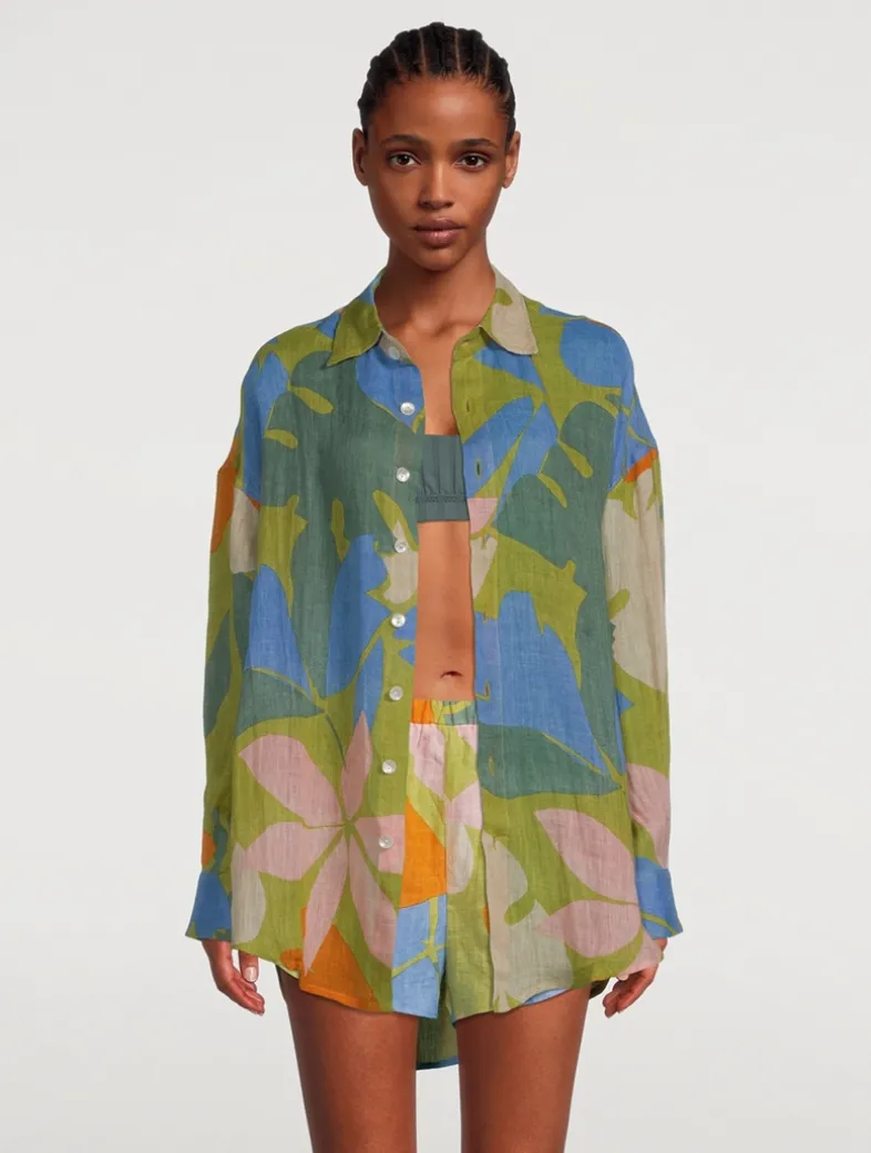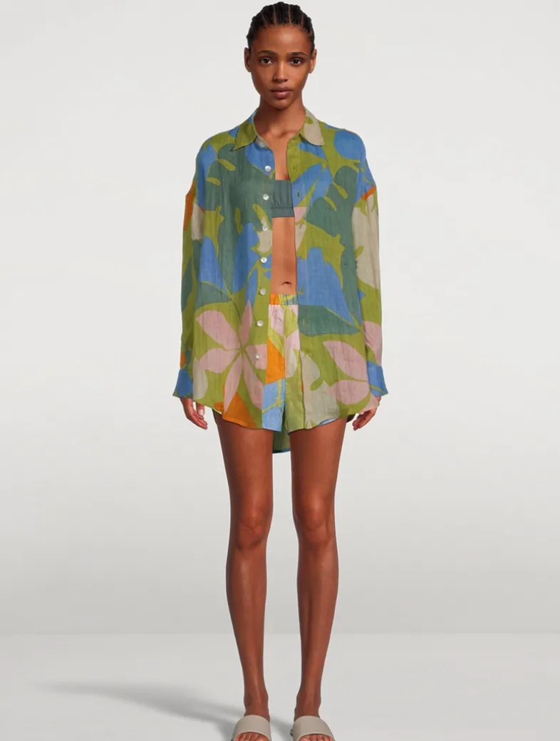 VITAMIN A beachwear is made from environmentally-friendly fabrics. Perfect as a beach cover-up, this oversized shirt in lightweight, breathable linen gauze, is designed with long drop sleeves and natural shell buttons.