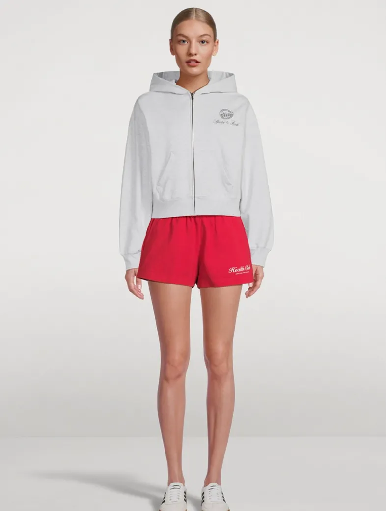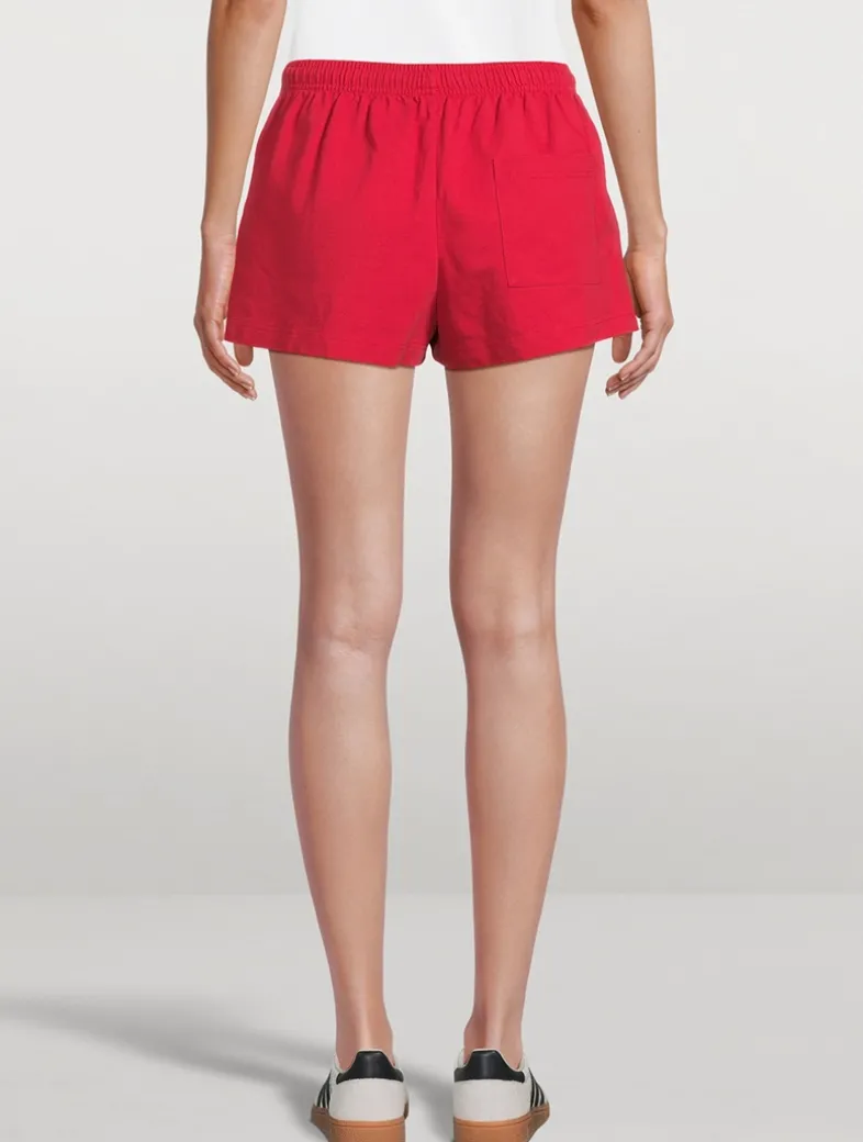These super-short, heavy jersey shorts feature an elastic waistband, two side pockets, and one back pocket.