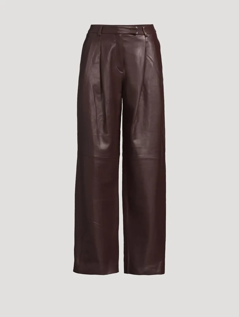 Twin-pleated trousers made in 0.3 mm thick glove-soft leather are cut to a wide-leg, high-waisted shape.