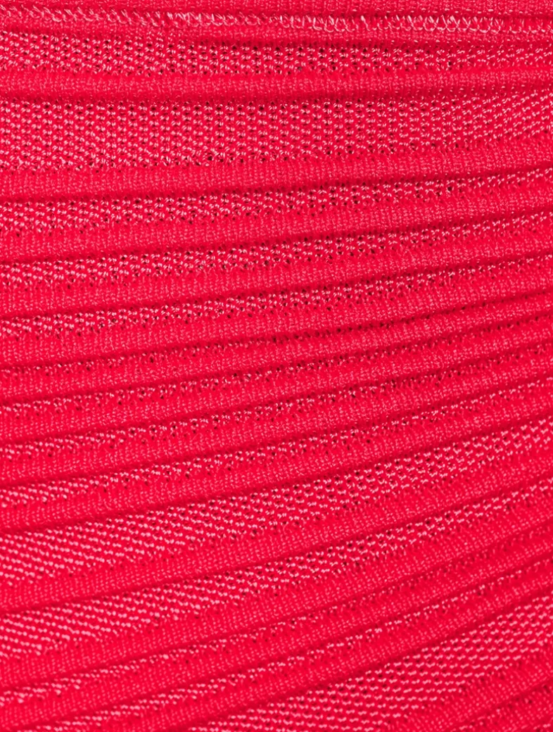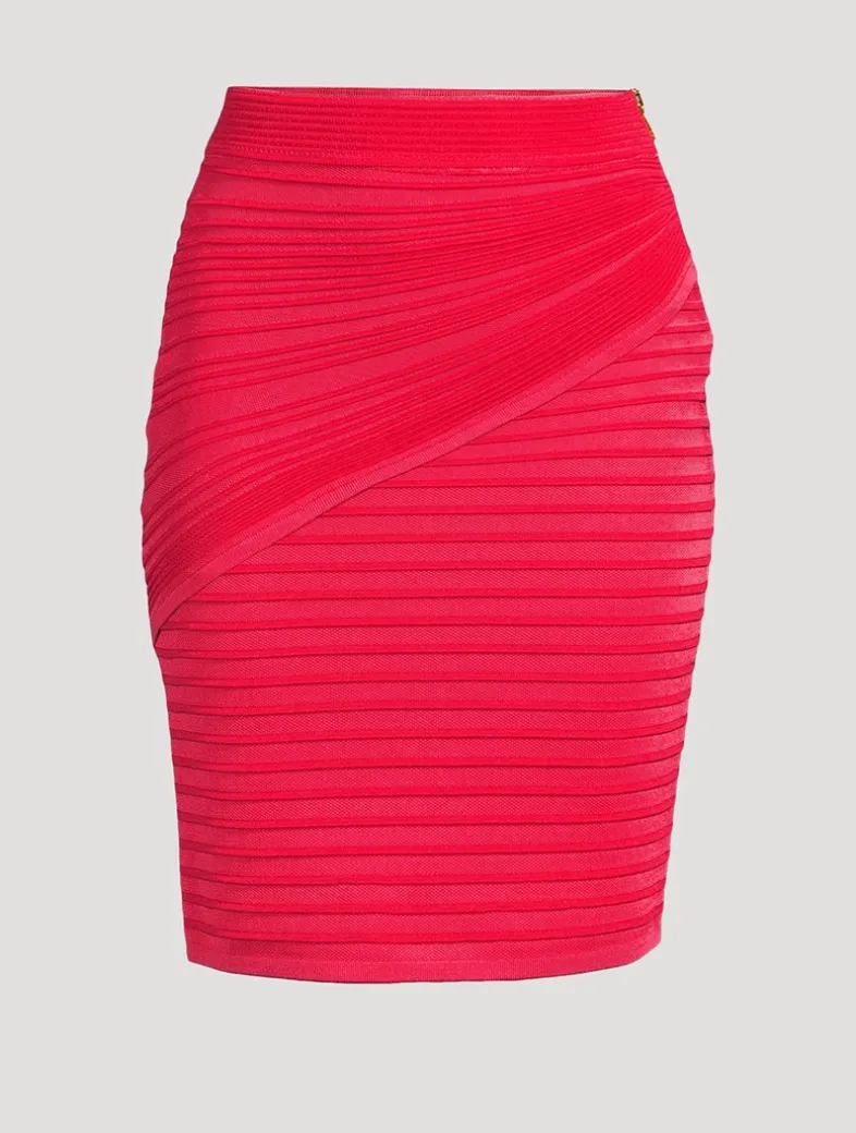 Cut in a curve-hugging silhouette, this knit pencil has a knee-length hem. It is embellished with an exposed zipper at the side and features a tonal pleated texture.