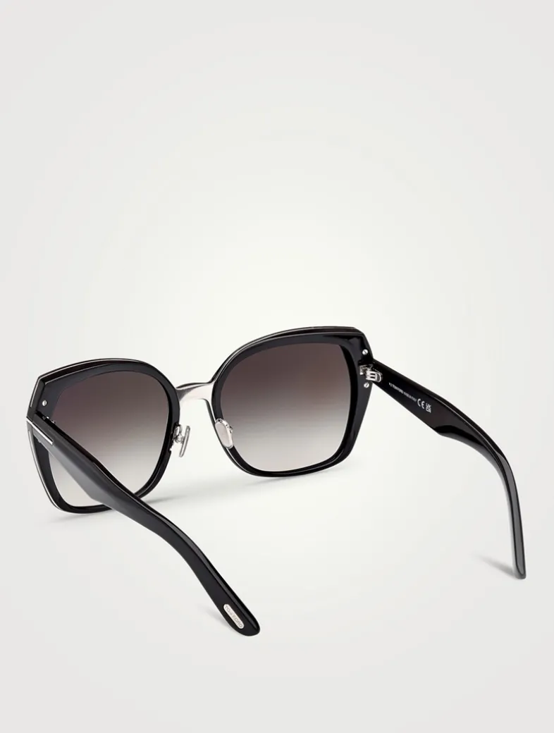 Finished with signature T’s along the temples, these acetate sunglasses feature an upswept butterfly shape.