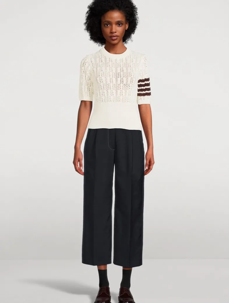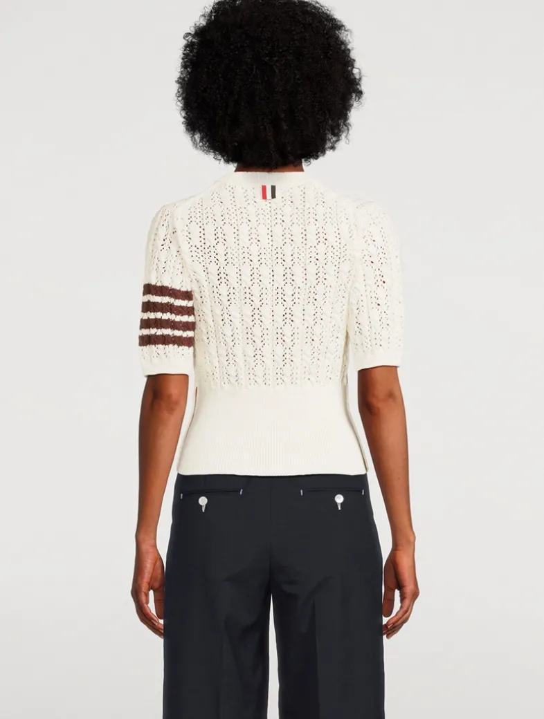 Inspired by preppy American country life, this elegant pullover features a romantic pointelle stitch and signature four-bar detailing.