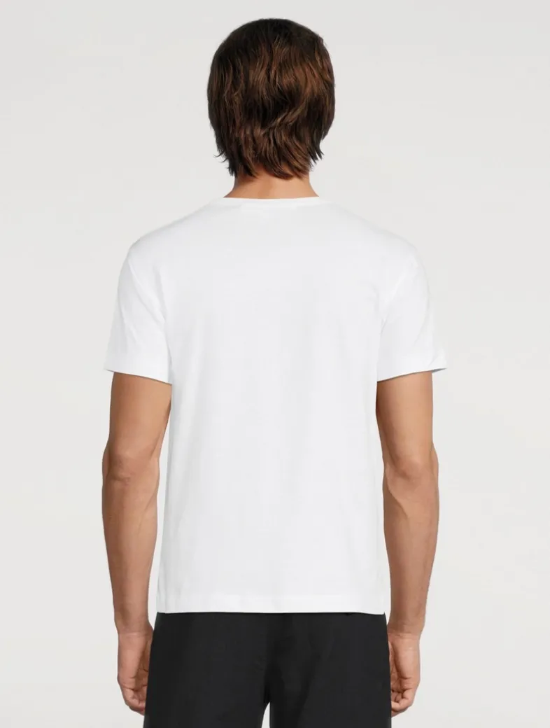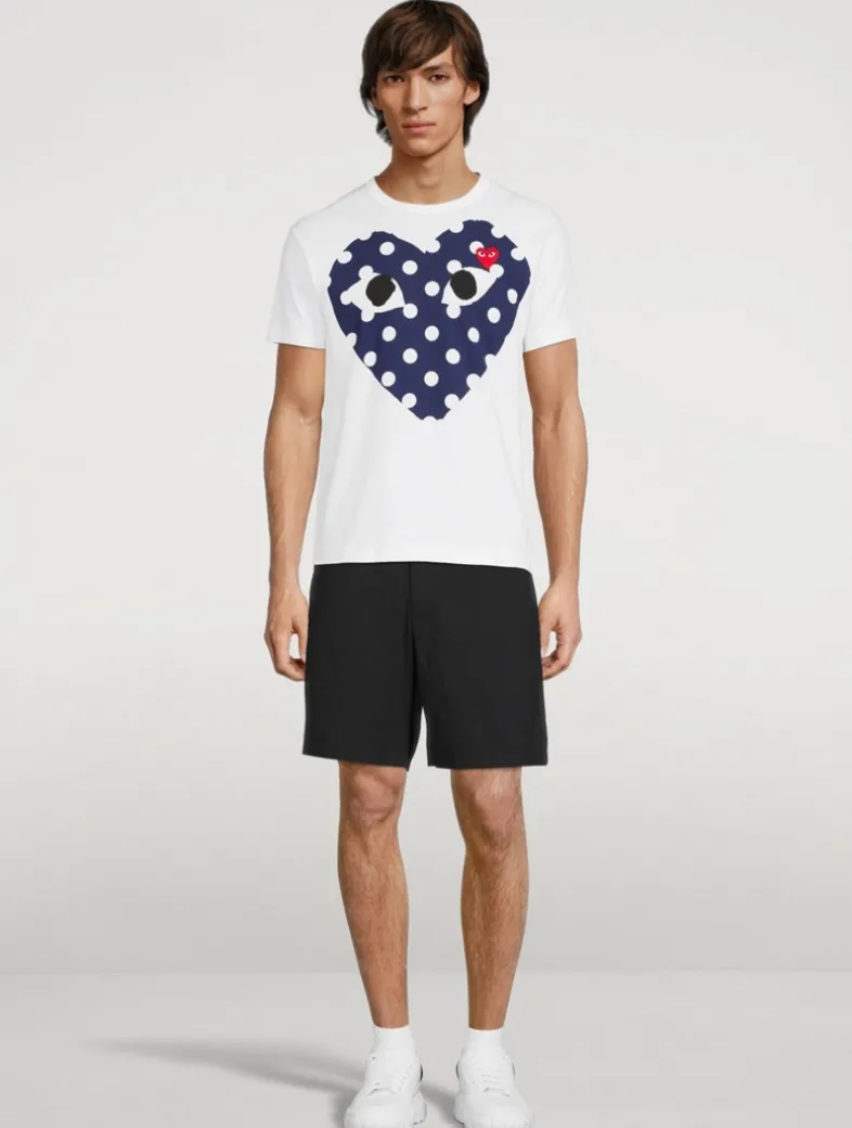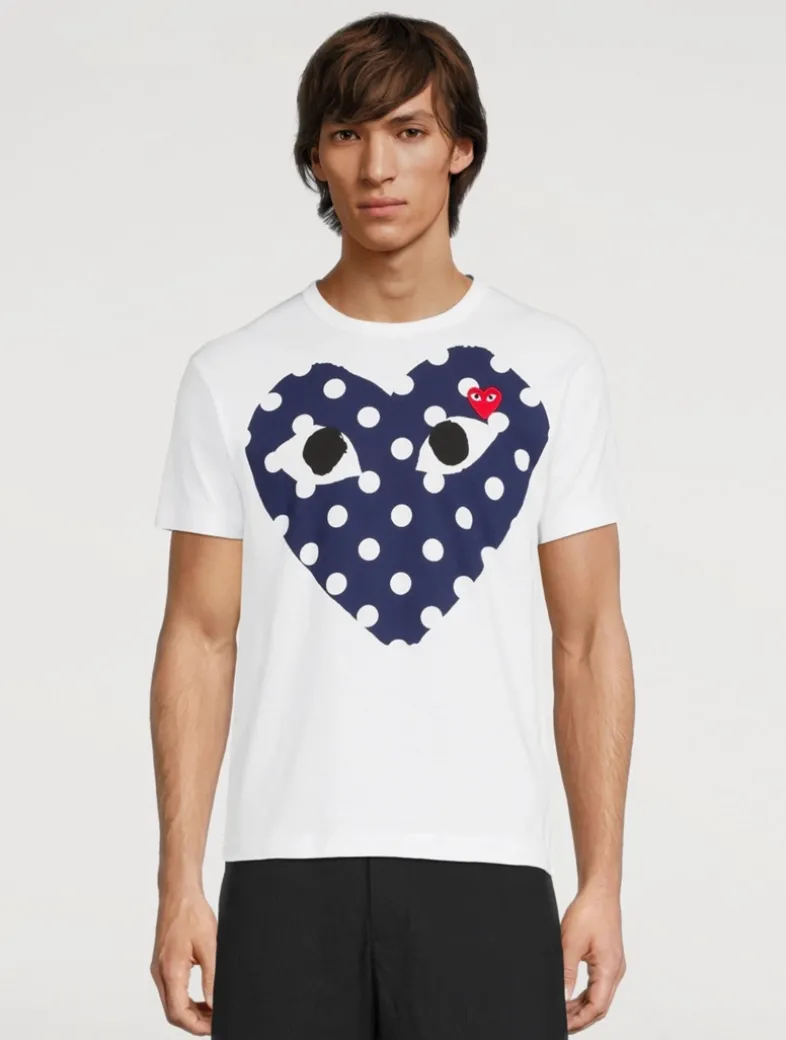 Crewneck T-shirt featuring printed heart graphic with signature embroidered appliqué at chest.