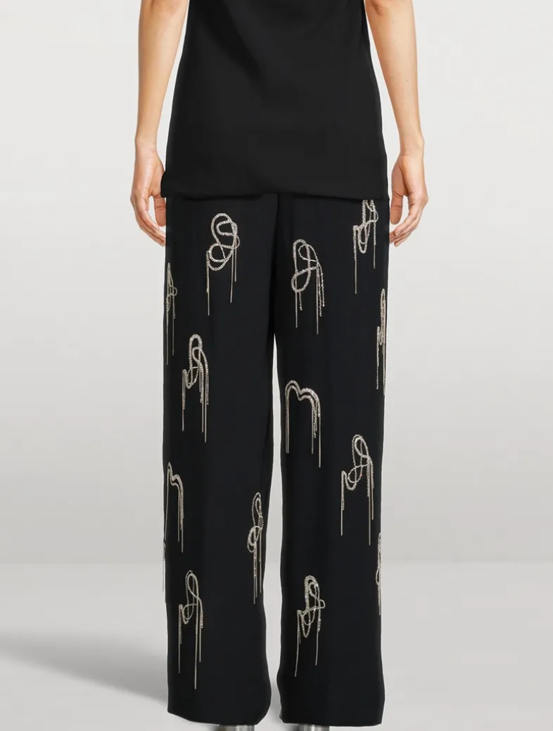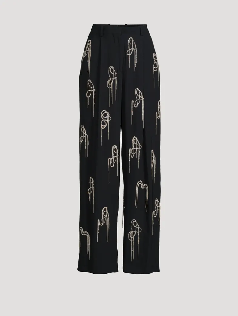 Dazzling crystal beading with fringe adorns these trousers, elevating them from workwear staple to the perfect evening option. They have a fluid construction with a high-rise waistband and wide-leg silhouette.