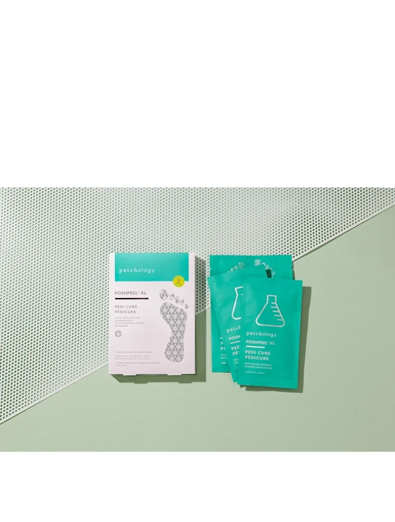 This luxurious, incredibly effective foot peel treatment that progressively dissolves dead skin on your feet with a combination of powerful acids. This peel is formulated with PATCHOLOGY’s activating essence, which contains an advanced AHA plus BHA botanical blend featuring glycolic, salicylic, lactic, and citric acids. These four potent ingredients work together to deeply exfoliate and soften the surface of your skin, speeding up cell turnover, and encouraging dead skin to slough off.