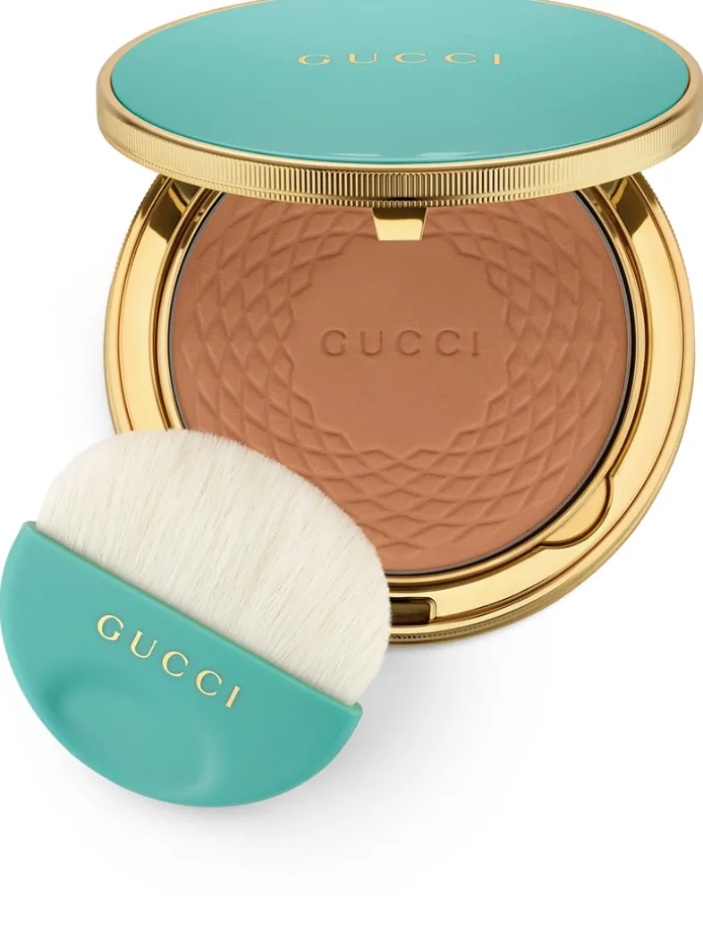 This bronzing powder is designed to deliver a luminous looking finish and create a natural glow. Visibly unifying the complexion in one stroke, this soft and silky comfortable formula with natural colour, creates a long-lasting, warm, healthy-looking glow. Blurring fine lines and pores, complexion appears naturally perfected and sculpted. Its light, pleasant scent whisks the wearer away into their imagination.