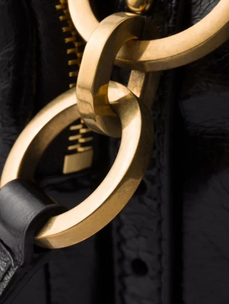 Leather handles, drop 25 cm Front zipper pocket Metal hardware Hot-stamped logo on the pocket Zipper closure Logo-print nylon lining with zipper pocket