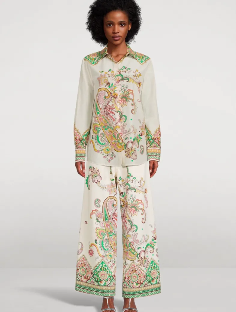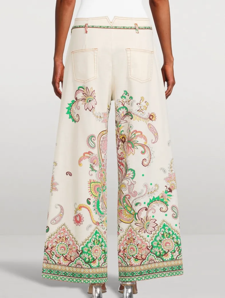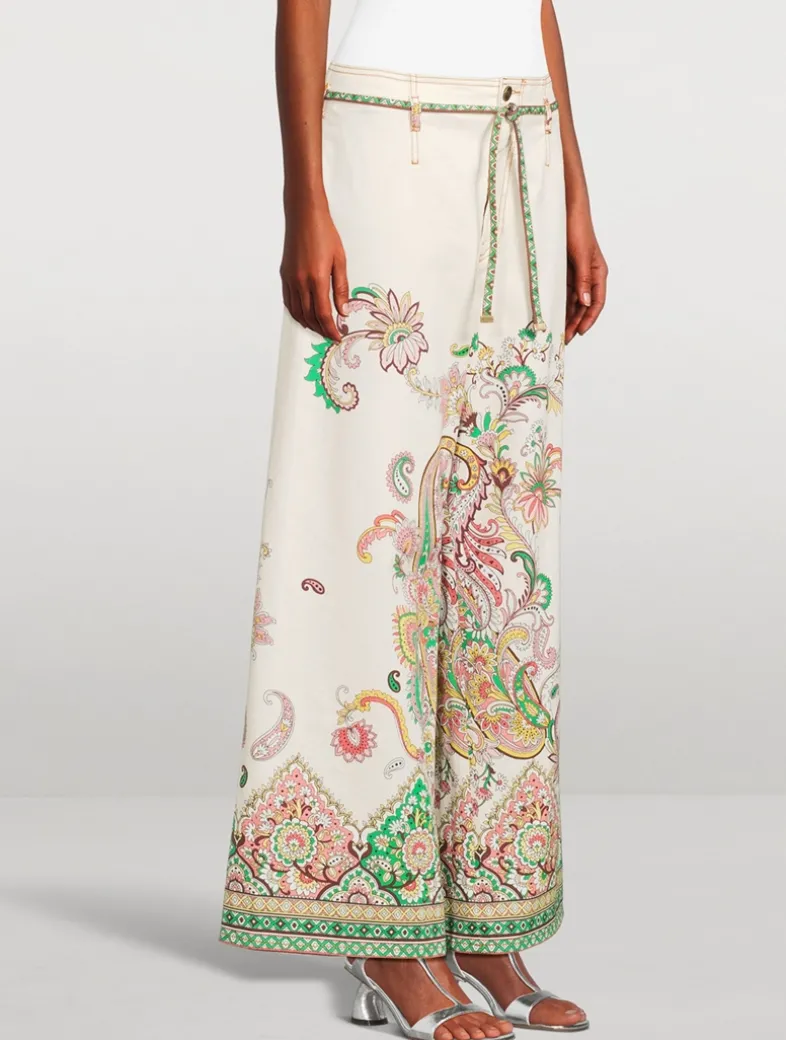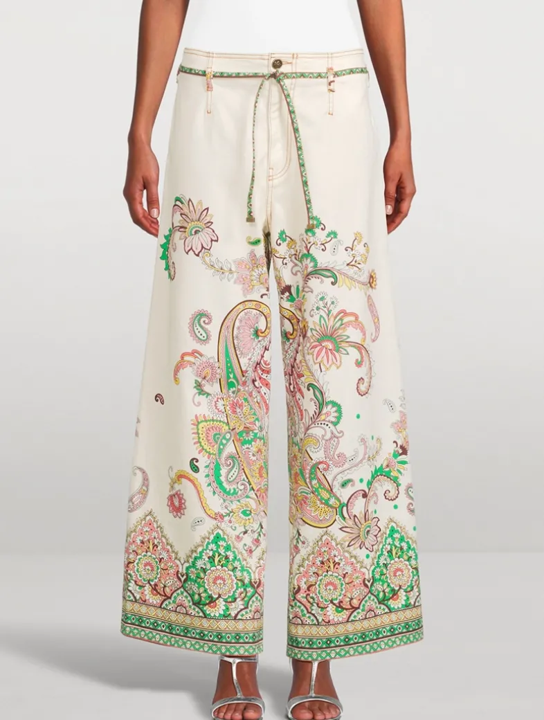 Made in Italy and printed with a vibrant multicolour motif, these wide-leg jeans are detailed with a removable knotted belt. They are crafted of a stretch cotton denim, ensuring the perfect fit.