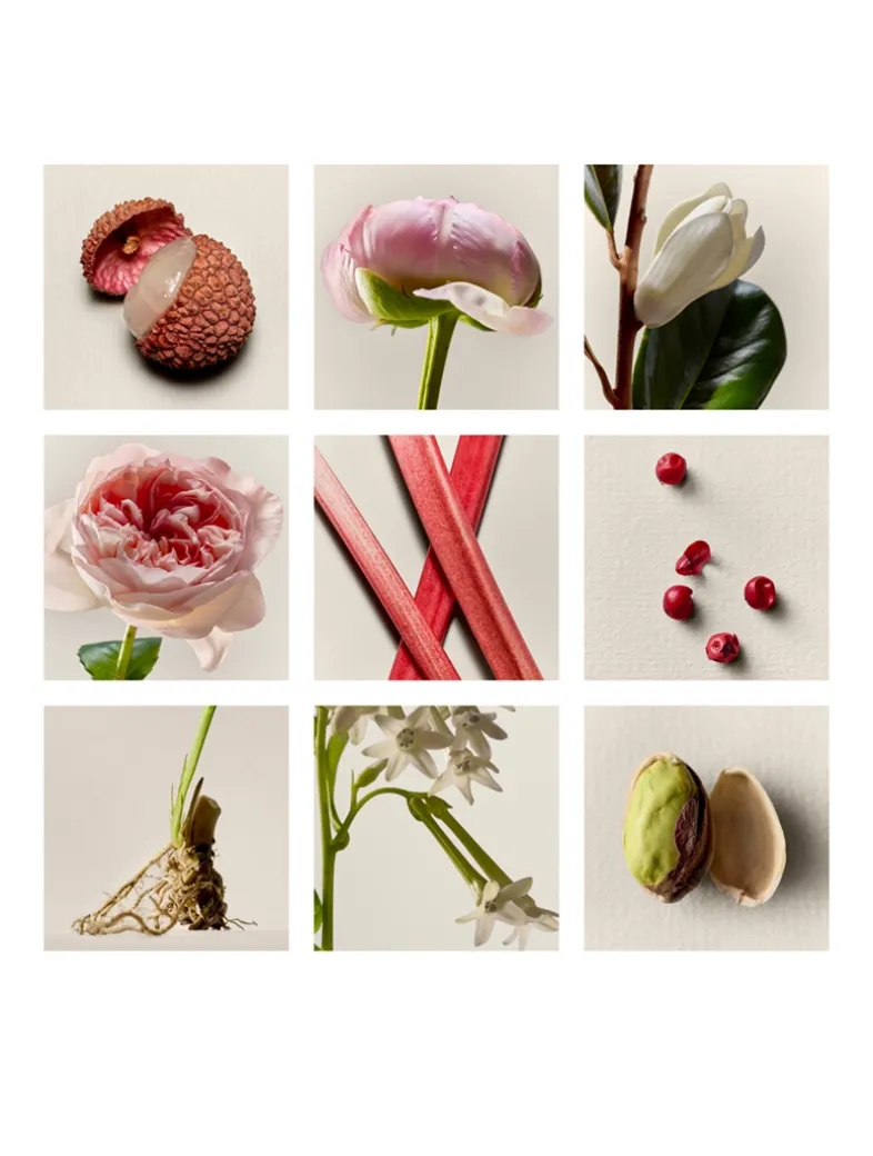 Centifolia Rose, Chinese Magnolia, Lychee, Rhubarb, Vetiver, Pink Peppercorn, Pistachio, Night-Blooming Jasmine