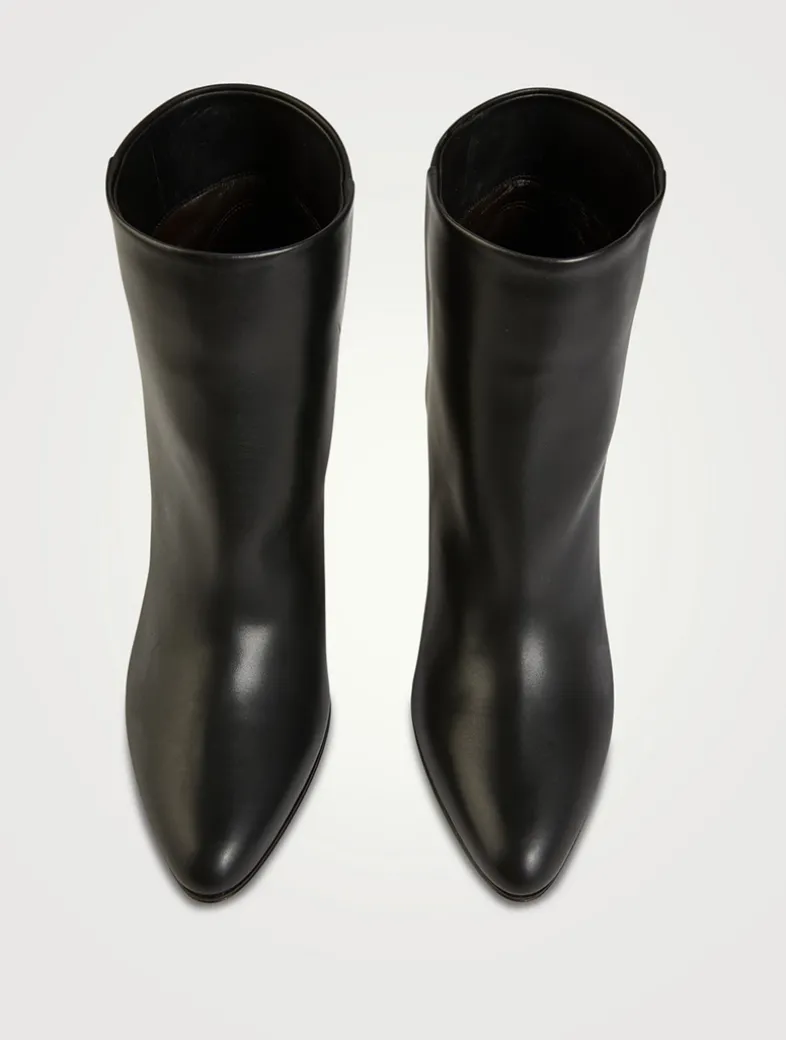 Sleek pull-on ankle boots in smooth nappa leather with a seamless construction and pointed oval toe.