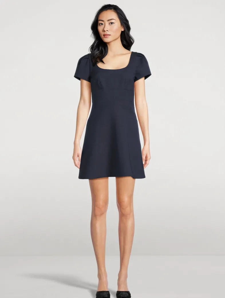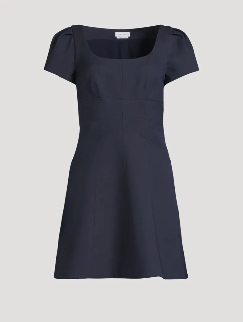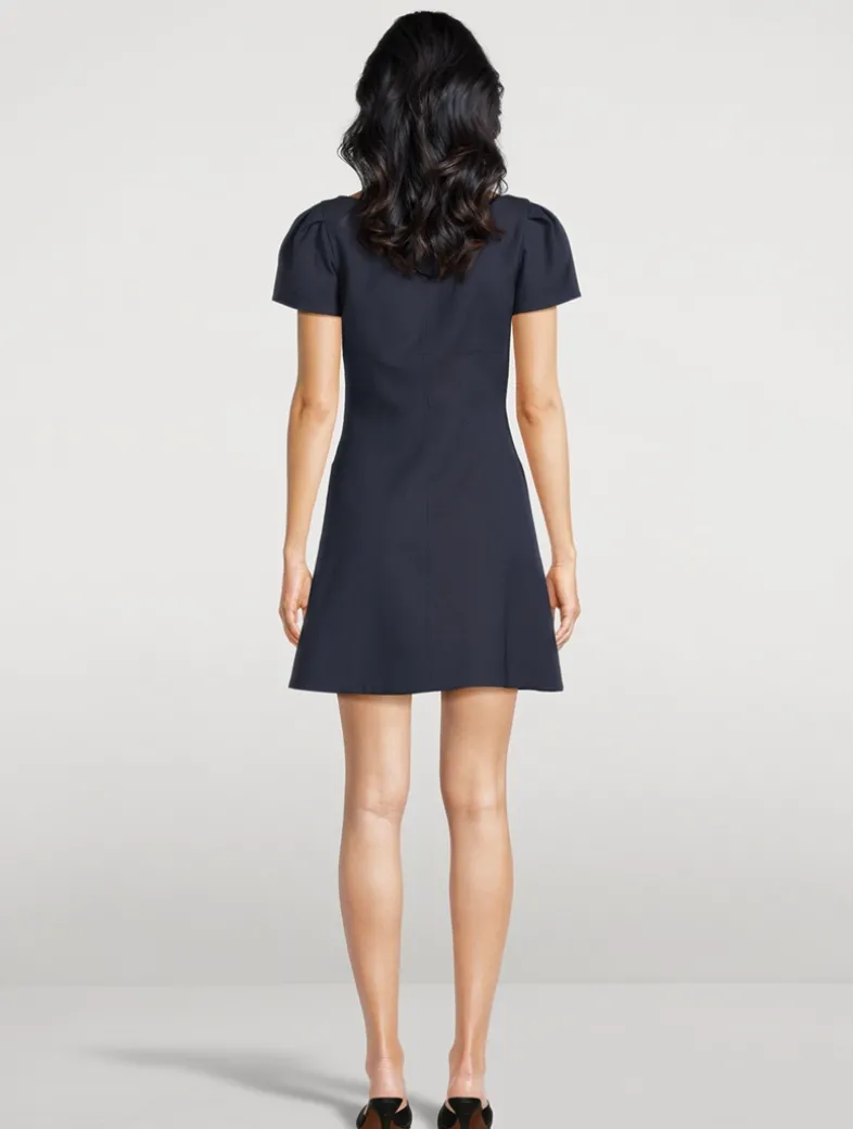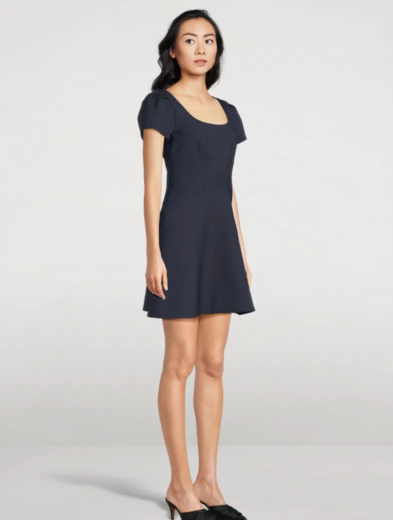 Exuding a romantic sense of playfulness, this wool and silk-blend mini dress is designed with a square neckline, short gathered sleeves, and corset-inspired stitch detailing.