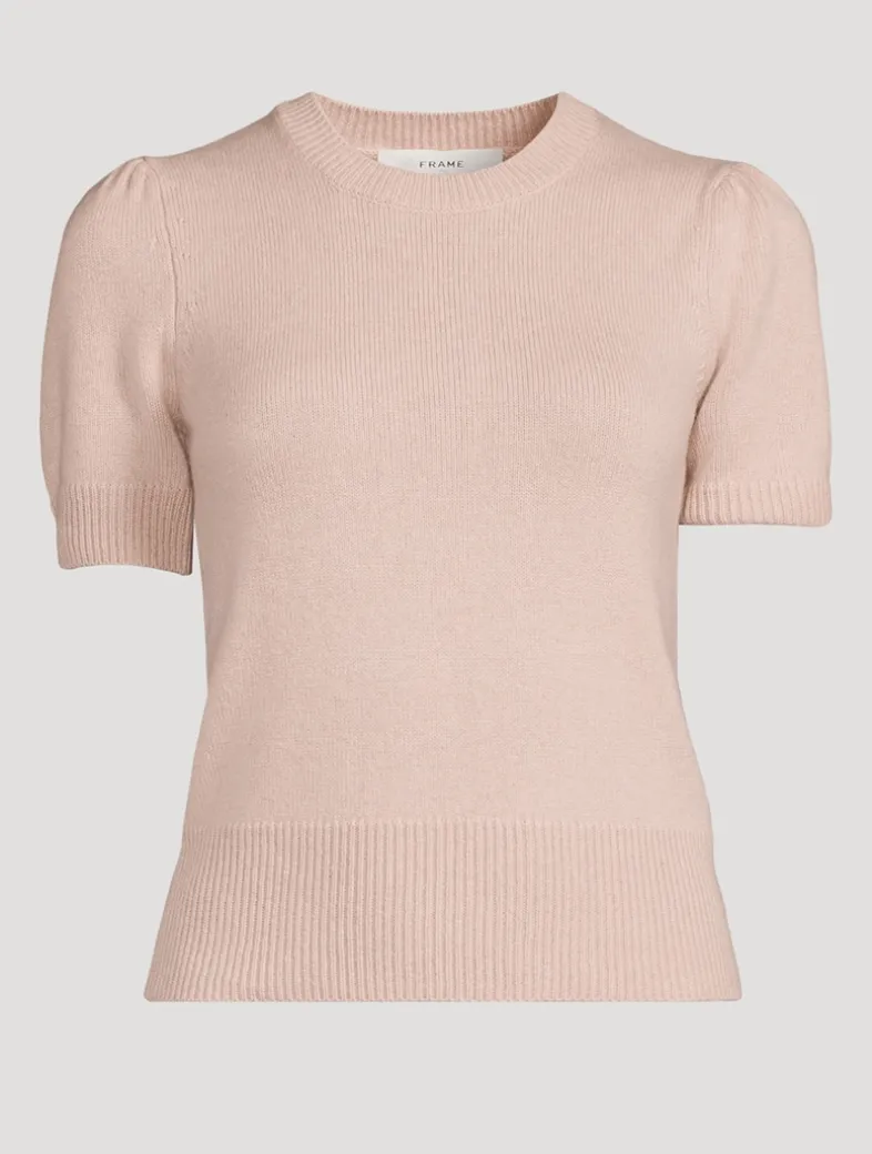 Sustainably produced and crafted from recycled cashmere, this crewneck sweater is artfully gathered to subtly enhance the figure. Note the puff sleeves with soft pleating that infuse this sweater with a feminine feeling.