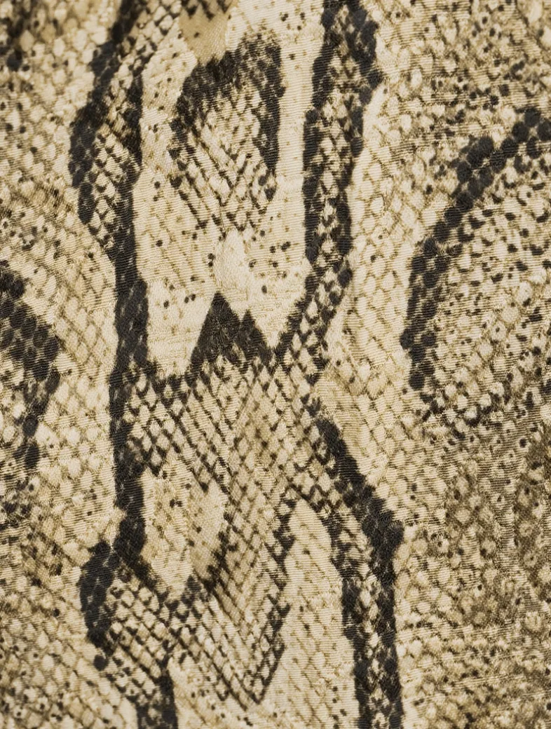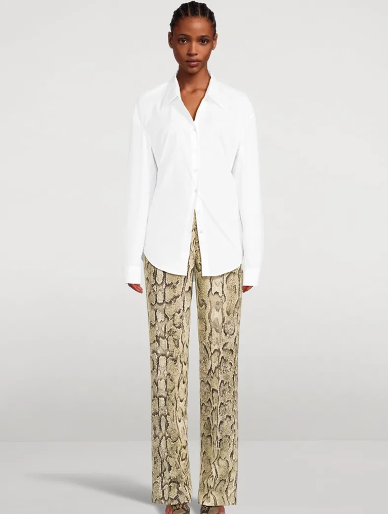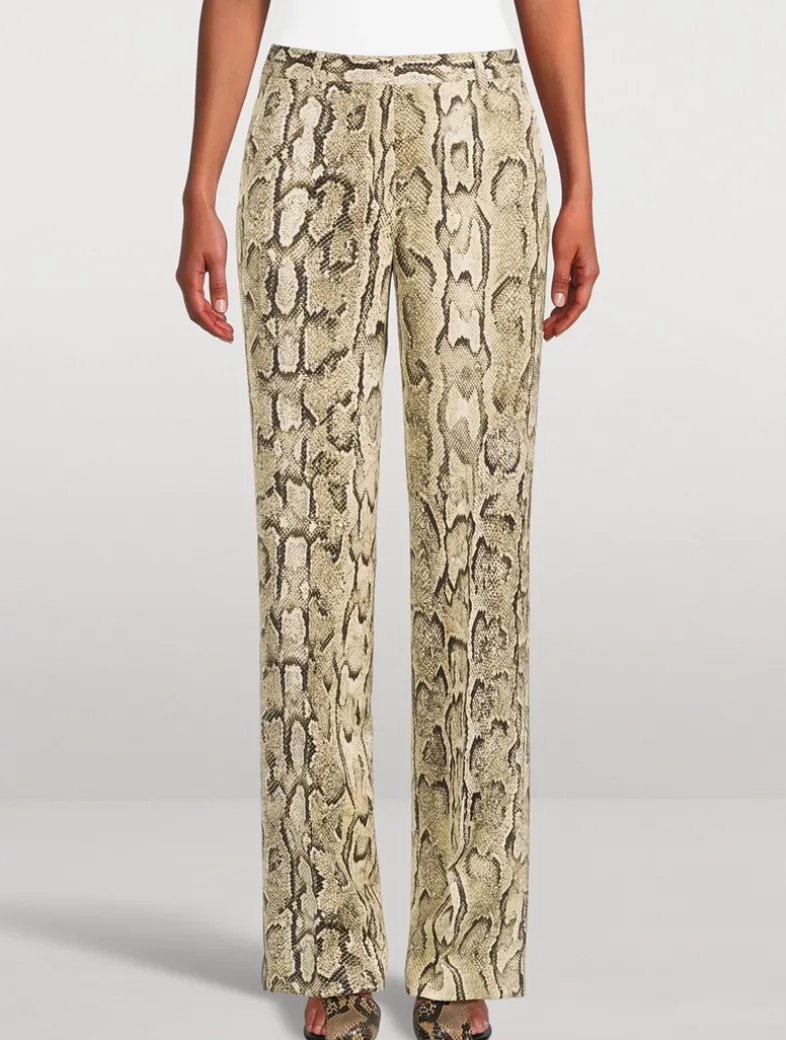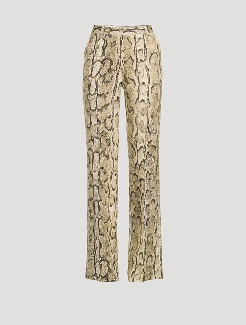 Crafted from a cotton blend, these straight-leg trousers are printed with a classic snakeskin motif. The high-rise pants are designed with permanent press pleats, belt loops, and welt pockets at the rear for a sharp look.