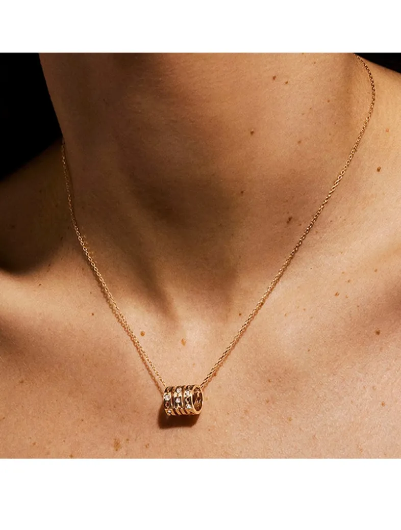 The Pulse collection sets new codes with finely chiselled creations. Crafted with a delicate chain, this adjustable necklace features a triple-ring pendant with rhythmic cut-outs and diamond accents.