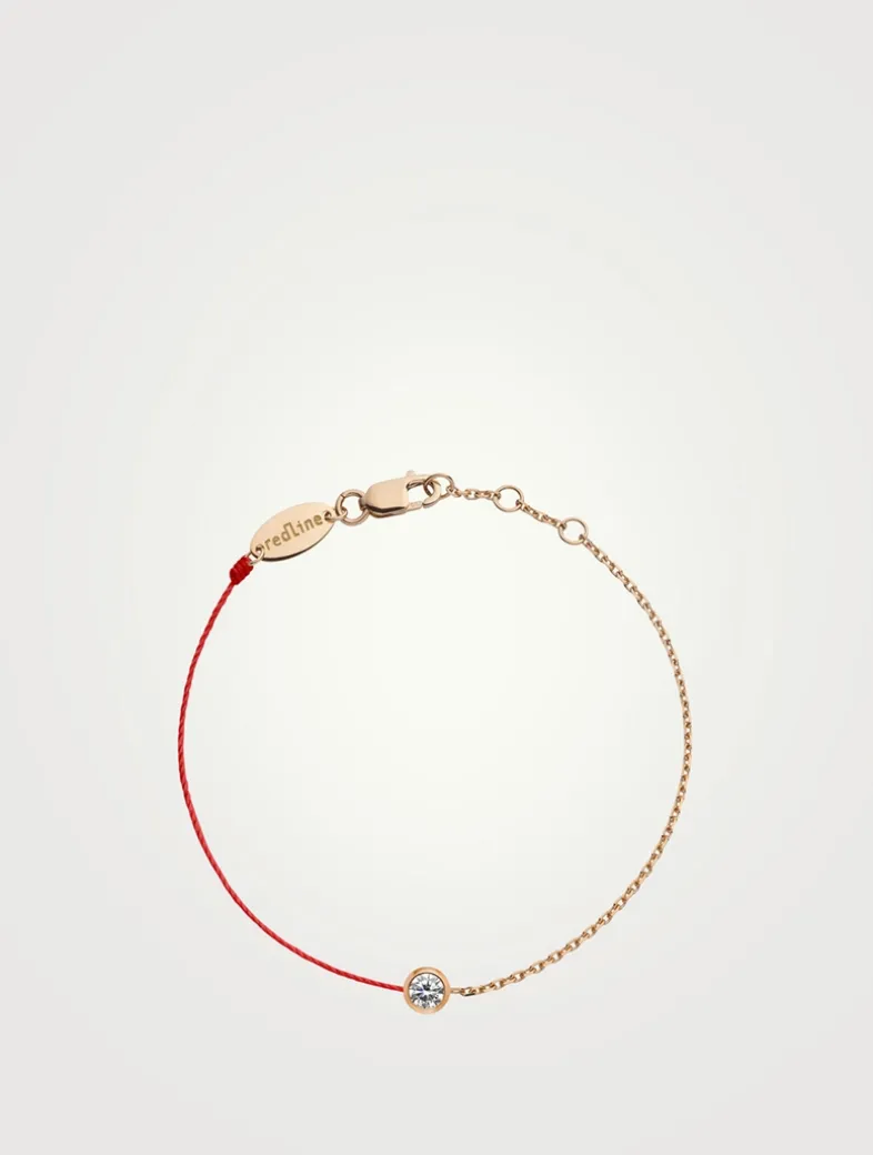 Pure 18K Rose Gold String Chain Bracelet With Diamond