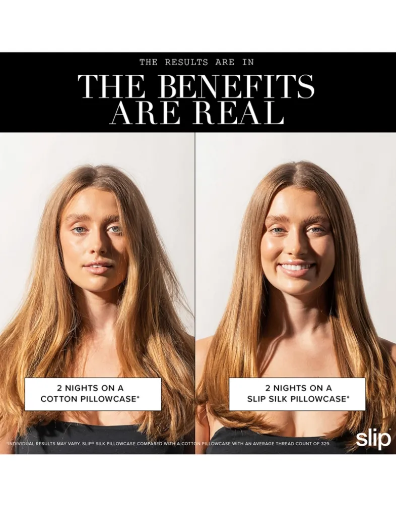 Why switch to a Slip pure silk pillowcase? Clinically shown to visibly improve: the appearance of fine lines, skin hydration, skin texture and smoothness, and skin radiance, luminosity or brightness. Over 95% of users agreed sleep creases, sleep lines and sleep wrinkles were fewer and less noticeable. The beauty secret of celebrity hairstylists, dermatologists and beauty experts.