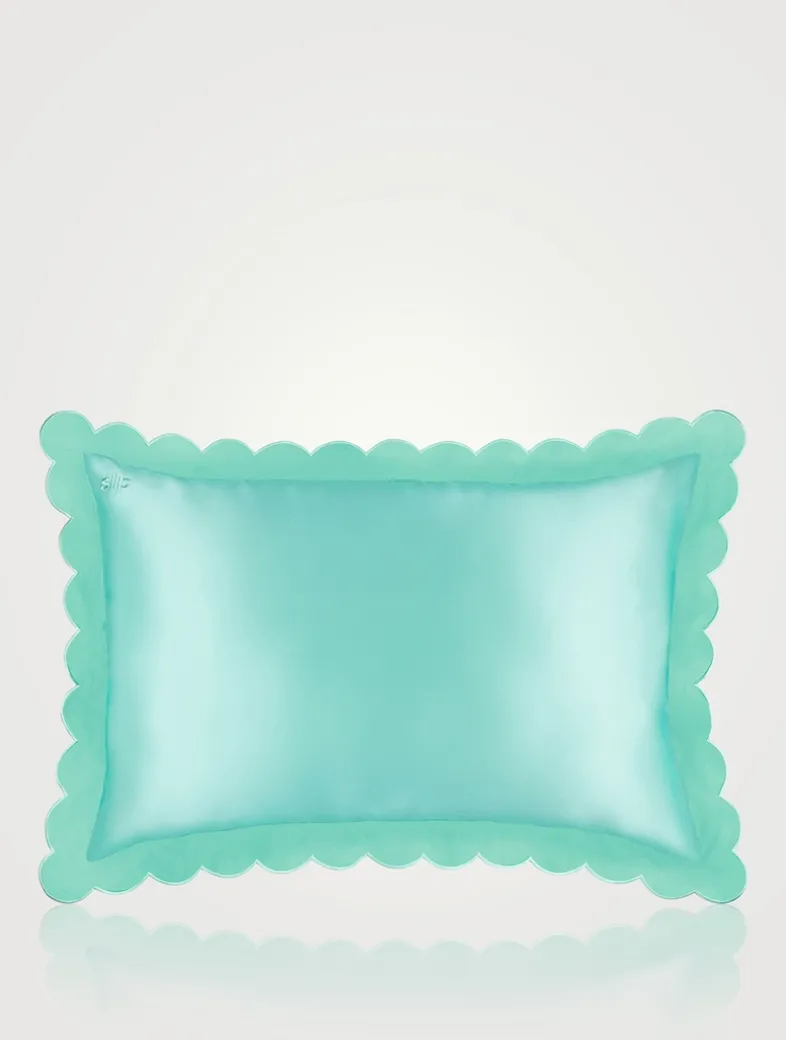 Includes: 1 x Turquoise pure silk queen pillowcase with Teal scalloped edge and invisible zipper closure (20