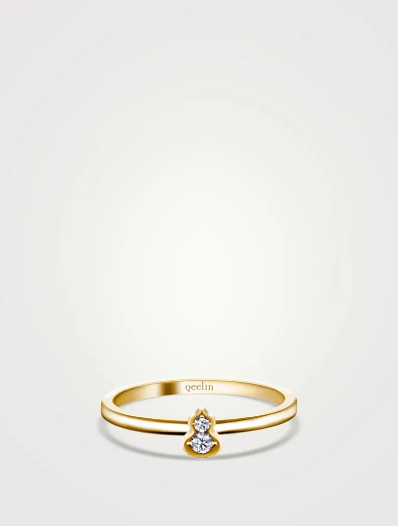 Echoing the curves of the lucky number 8, Wulu is the most powerful symbol of good fortune and positive energy in China. Crafted with a clean band, this mini solitaire ring features the Wulu motif, punctuated with two sparkling diamonds.