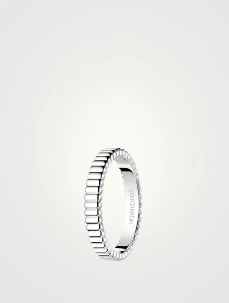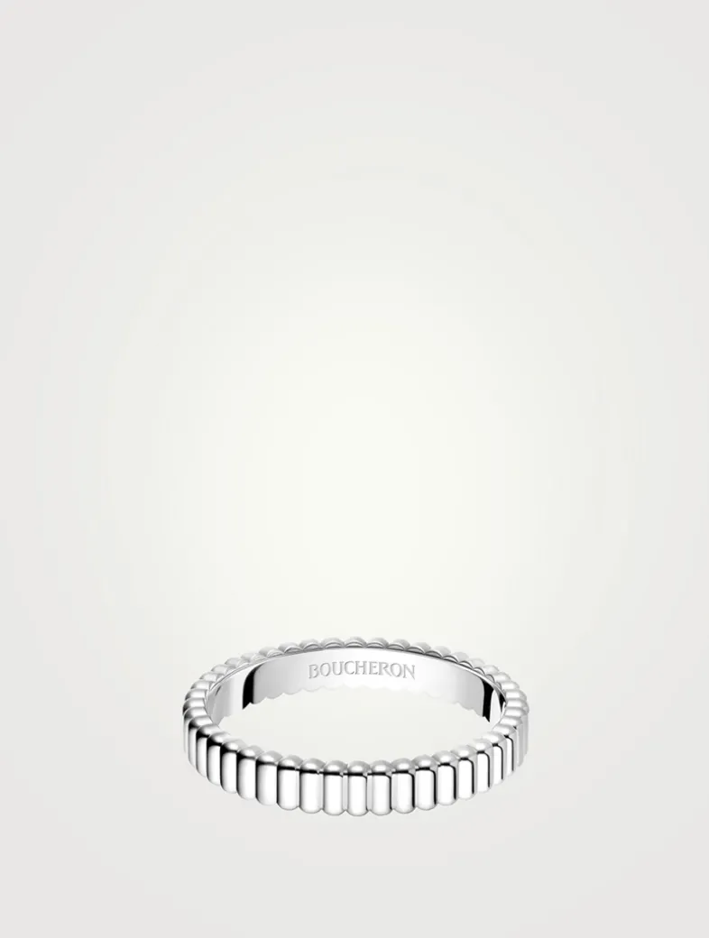 As an iconic code of the Maison, the Grosgrain motif acknowledges Frédéric Boucheron’s family who, as drapers, inspired the delicacy of his creations. It now takes the form of a ribbon of gold around the finger.