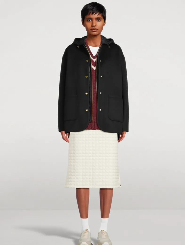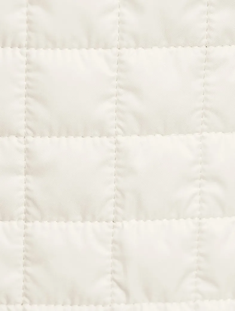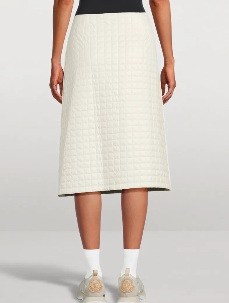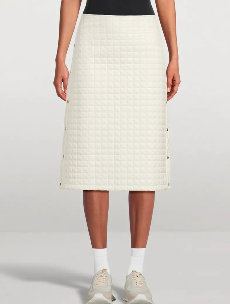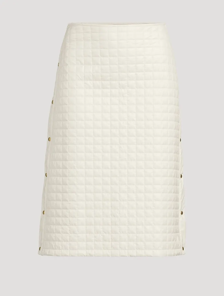 Crafted from soft microfiber, this padded skirt is enriched with square quilting. The design is completed by adjustable slits at each side.
