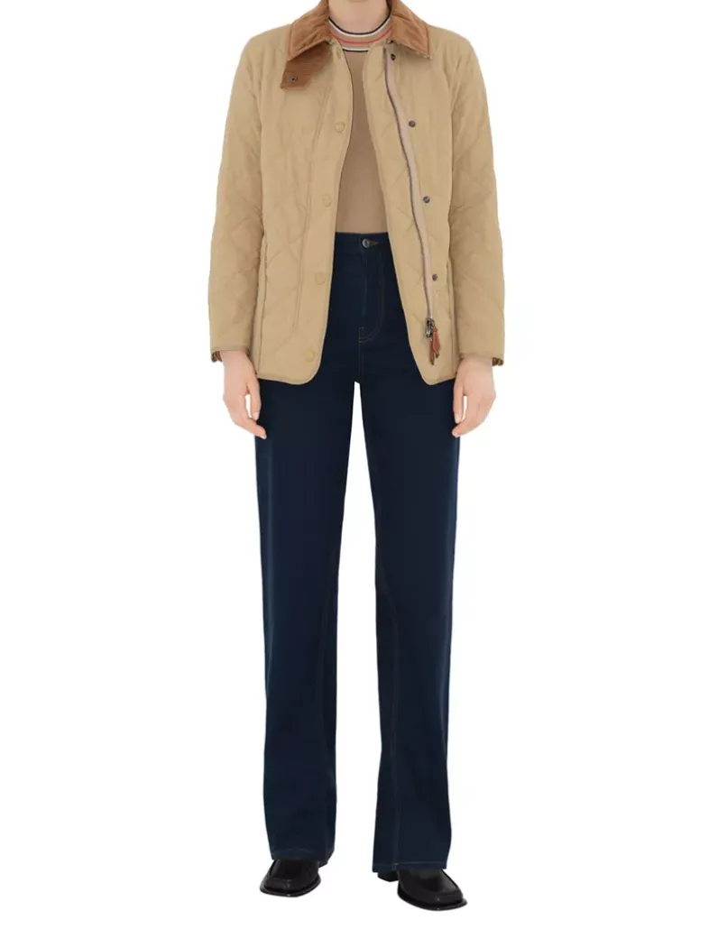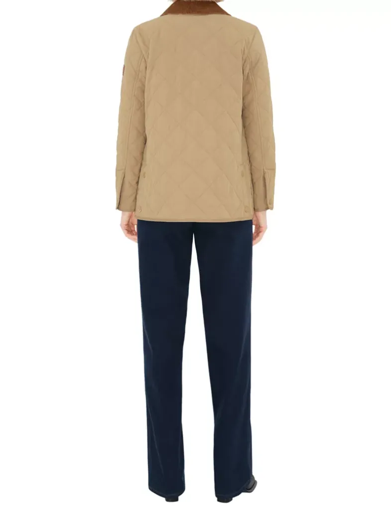 A quilted barn jacket in nylon with a corduroy collar, designed with 37.5® thermoregulation technology for insulation and breathability. The lightweight style is cut to a regular fit and lined in Burberry Check.