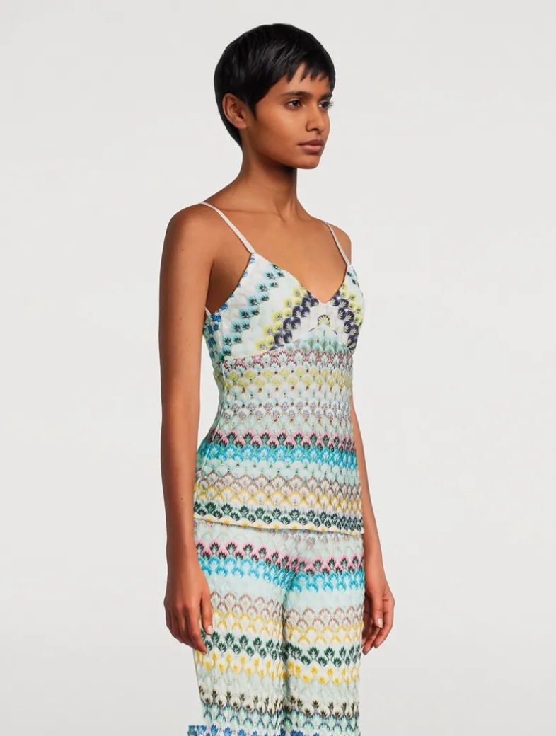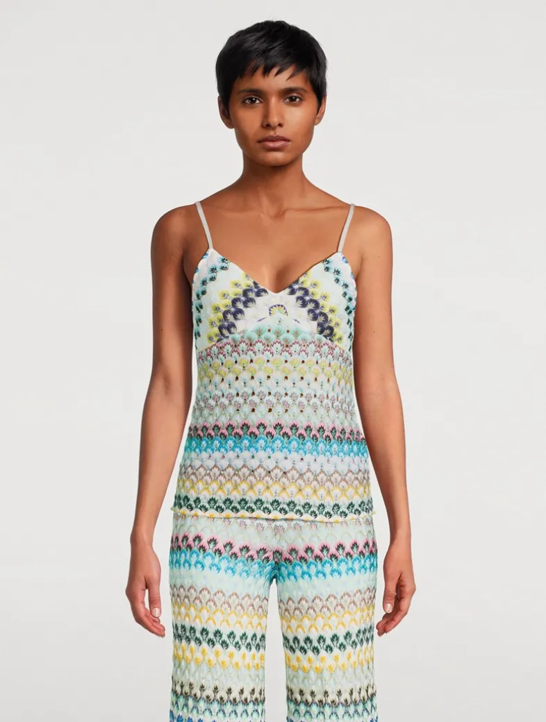 An ethereal elegance defines this slinky top, made of viscose with an intricate Raschel lacework. The abstract floral pattern adds modern refinement to the piece, which is designed with a V-neckline, empire waist, and slim shoulder straps.